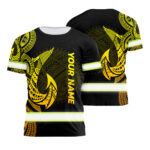 Hi Vis Shirt Reflective Tapes Yellow Hawaii Polynesian Fishing Custom Name Safety Workwear For Workers, Operator, Cyclists, Patriotic