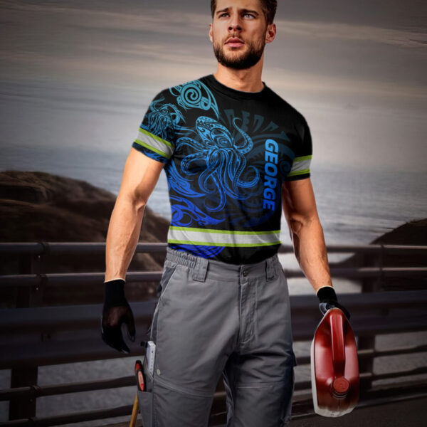 Be the first to review “Hi Vis Shirt Reflective Tapes Blue Gradient Octopus Hawaii Polynesian Custom Name Safety Workwear For Workers, Operator, Cyclists, Patriotic”