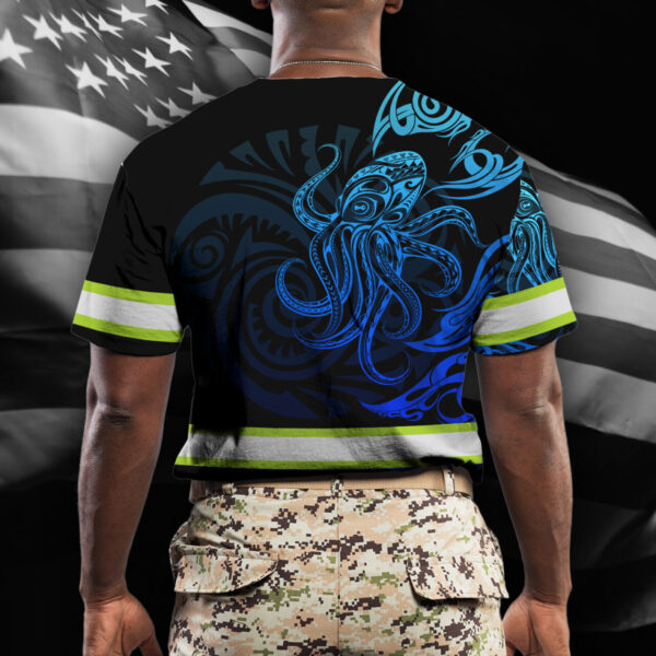 Hi Vis Shirt Reflective Tapes Blue Gradient Octopus Hawaii Polynesian Custom Name Safety Workwear For Workers, Operator, Cyclists, Patriotic quantity