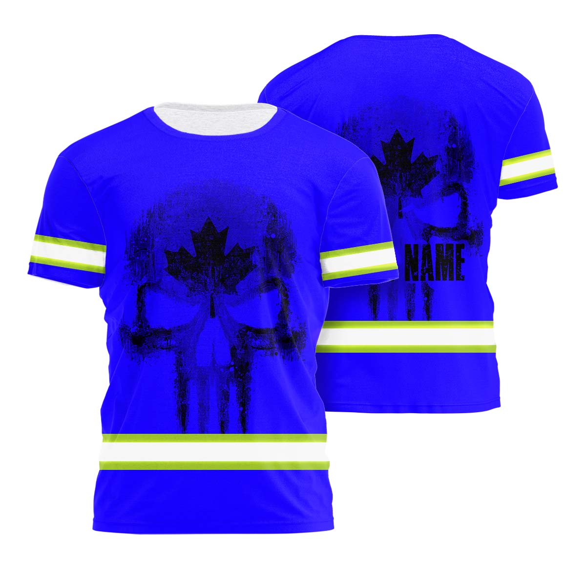 Hi Vis Shirt Reflective Tapes Blue Neon Canada Flag Custom Name