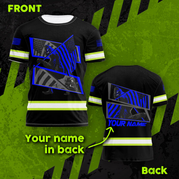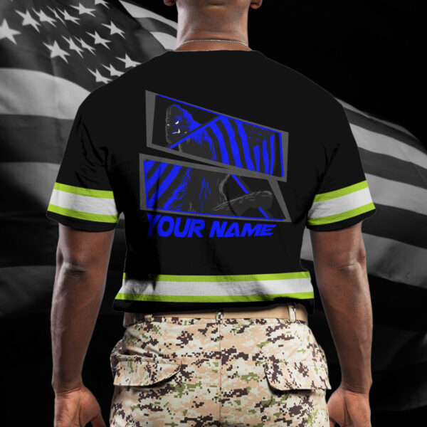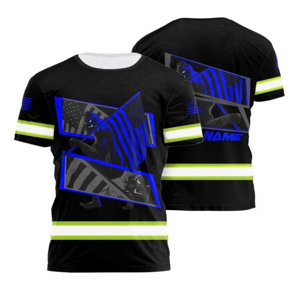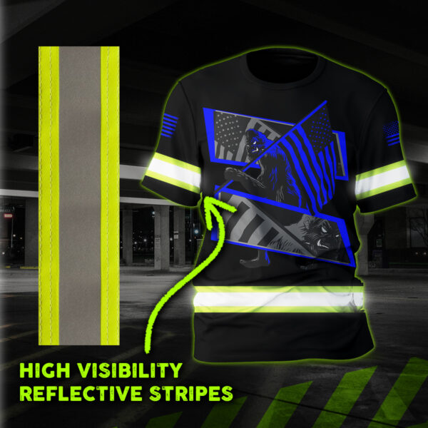 Hi Vis Shirt Reflective Tapes Blue Neon Outdoor Gorillas US Flag Custom Name Safety Workwear For Workers, Operator, Cyclists, Patriotic quantity