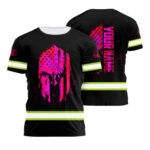 Hi Vis Shirt Reflective Tapes Pink Neon Strong Mask US Flag Custom Name Safety Workwear For Workers, Operator, Cyclists, Patriotic