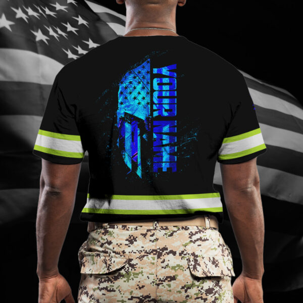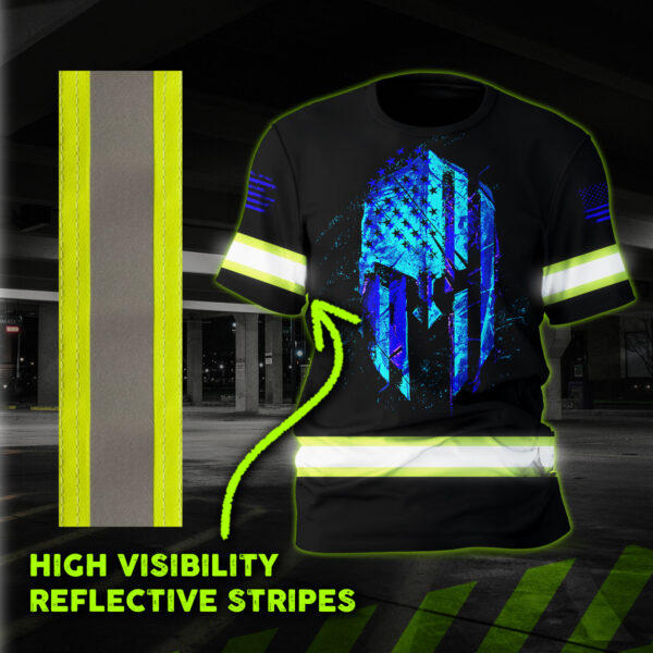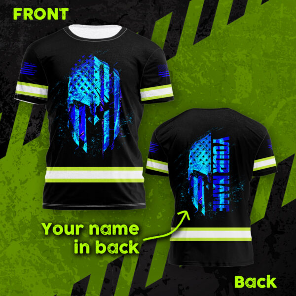 Hi Vis Shirt Reflective Tapes Blue Neon Strong Mask US Flag Custom Name Safety Workwear For Workers, Operator, Cyclists, Patriotic quantity