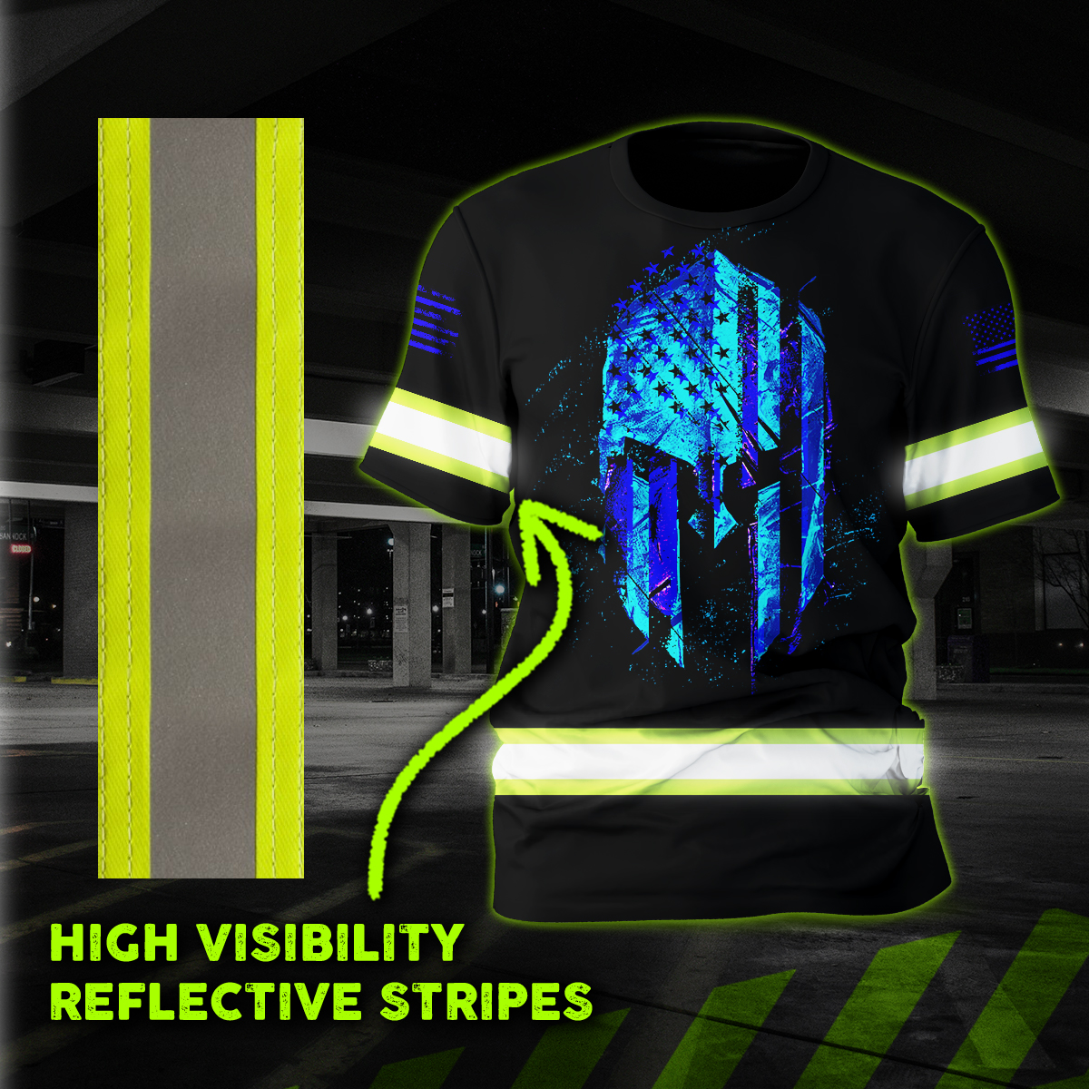 Custom High Vis Shirts Reflective Tapes Green Neon And Black US Flag