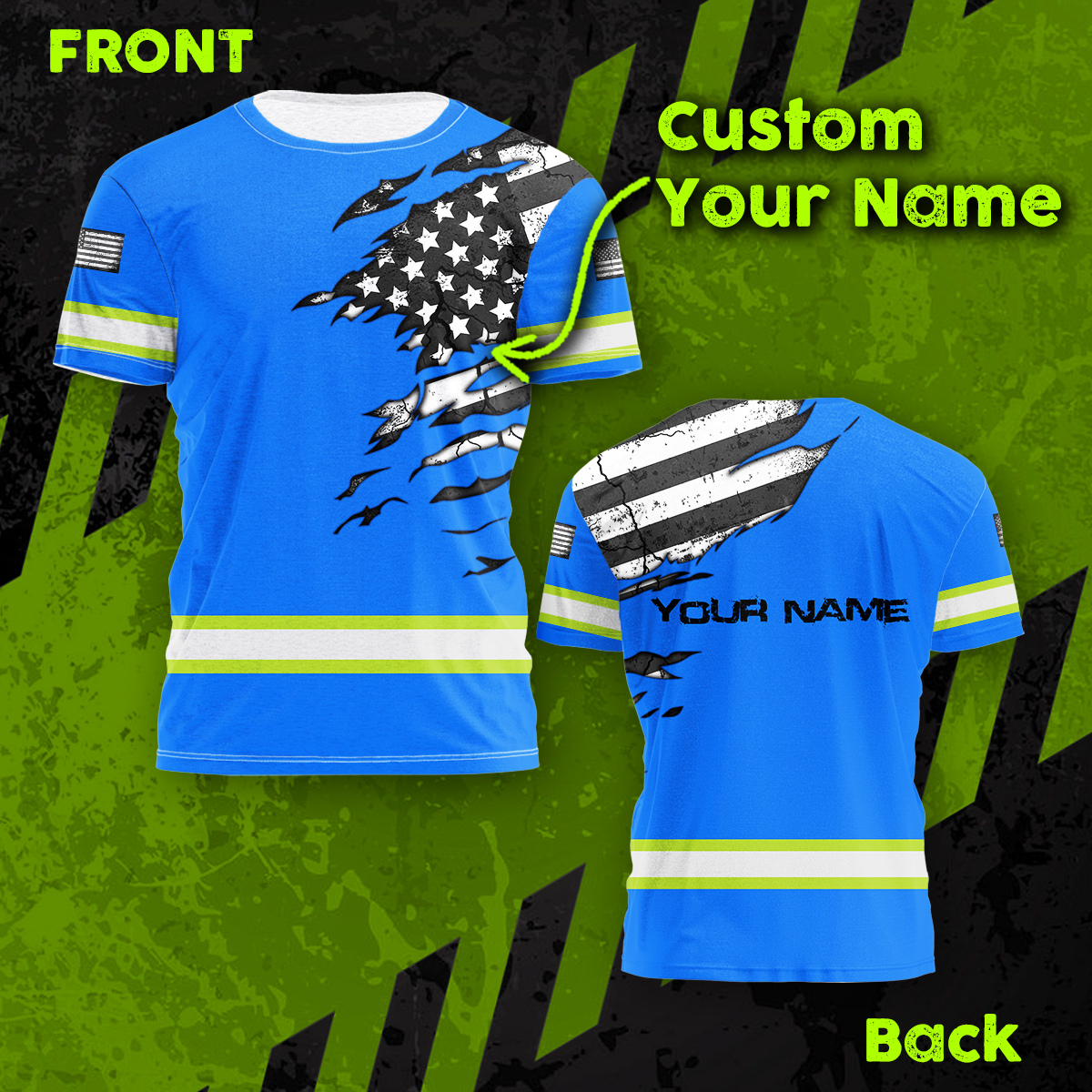 Hi Vis Shirt Reflective Tapes Blue Scratch Flags Custom Name Safety Workwear