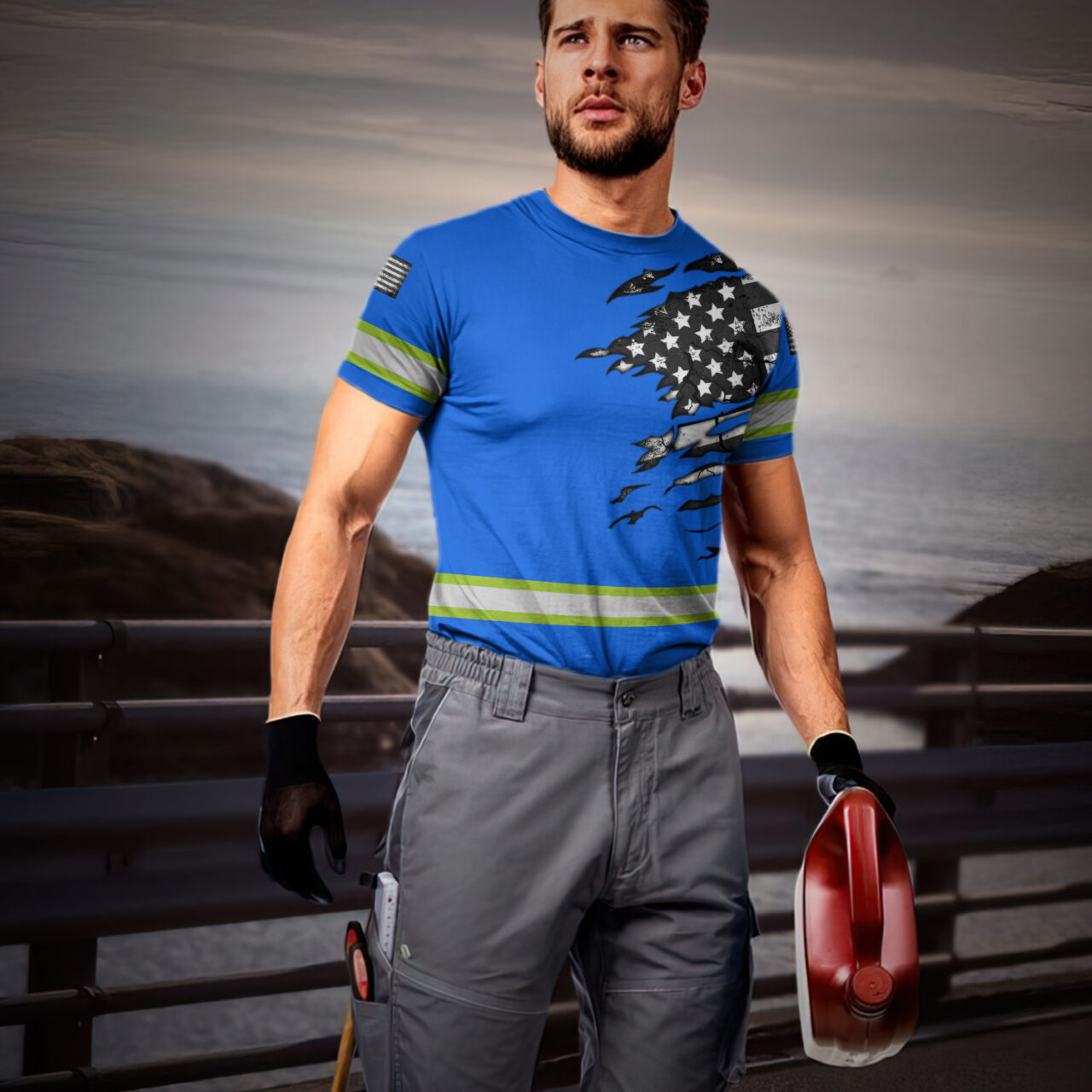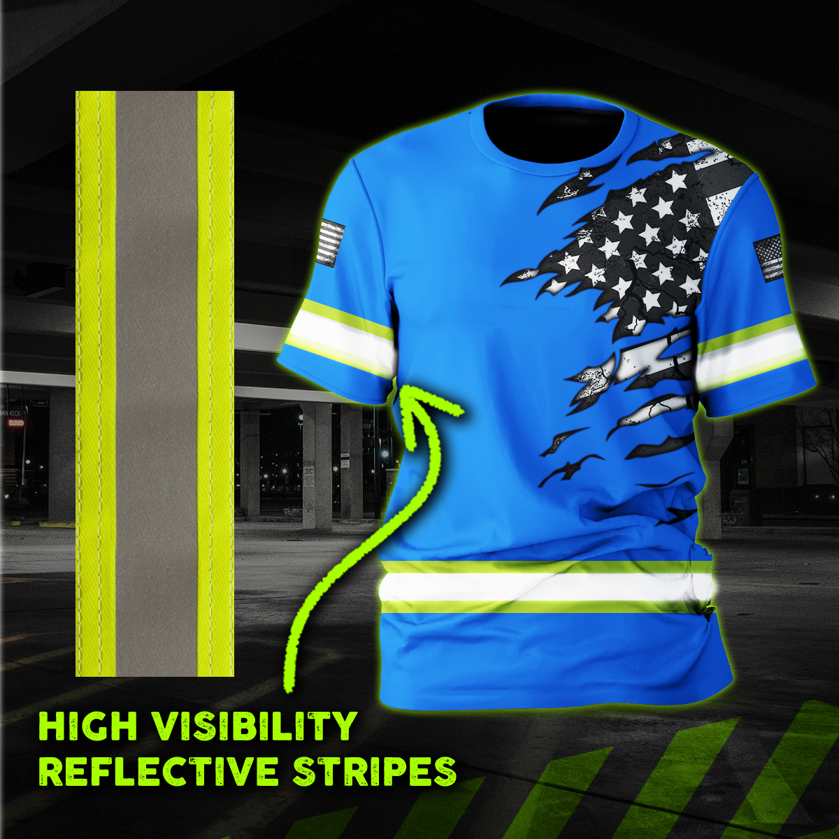 Categories: Hi Vis Safety Shirts, Safety Blue Shirts, US Flag Hi Vis Summer Products
