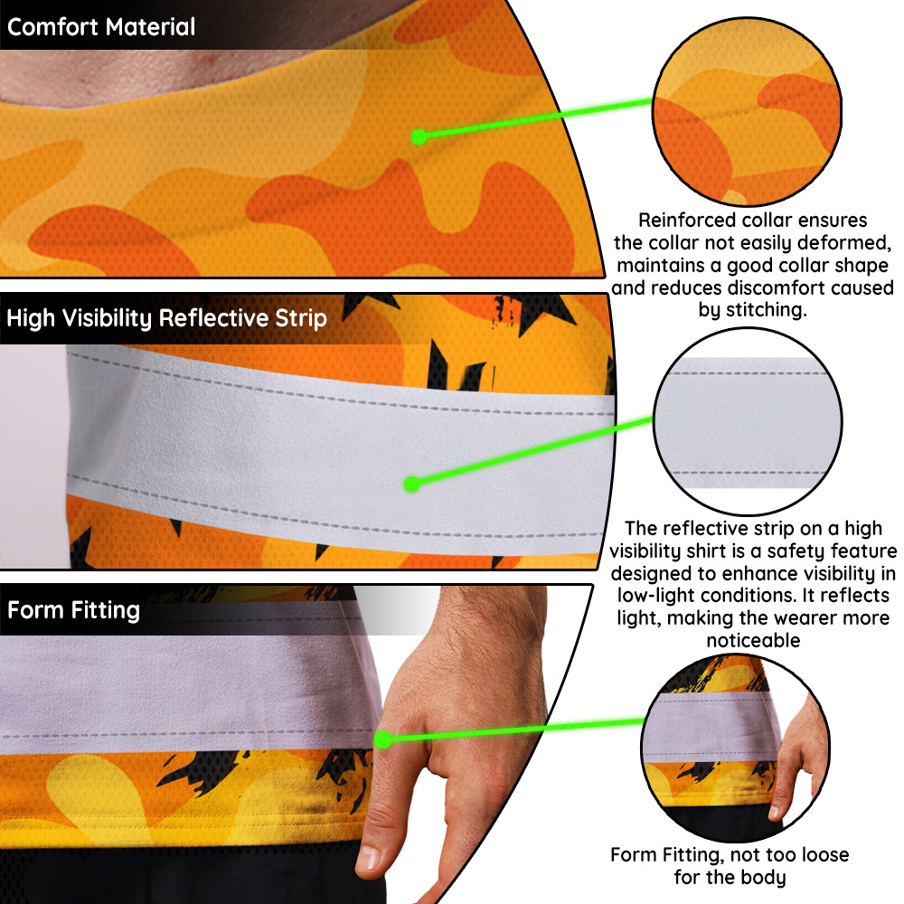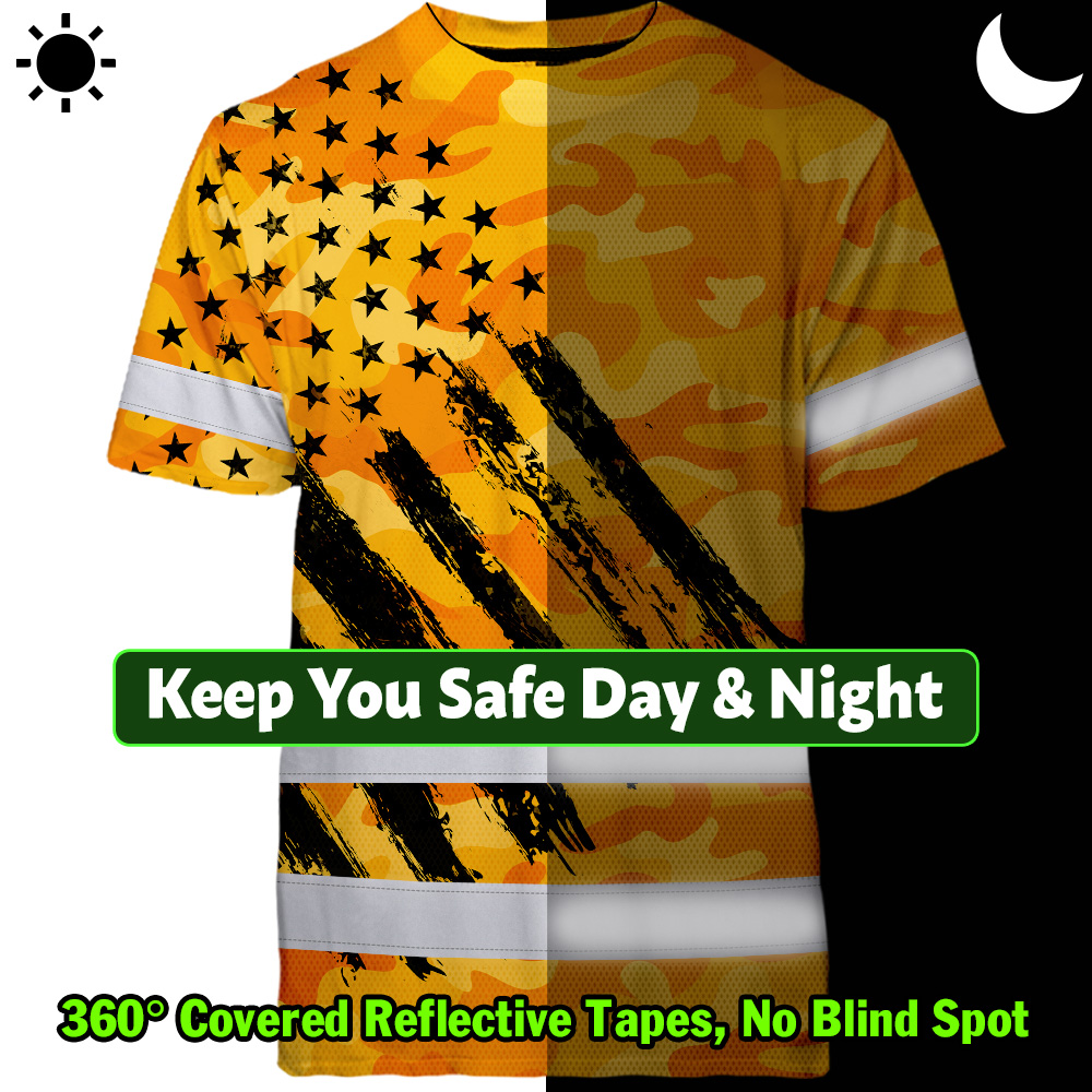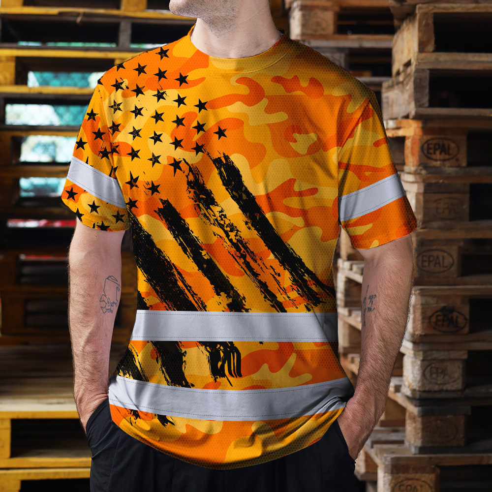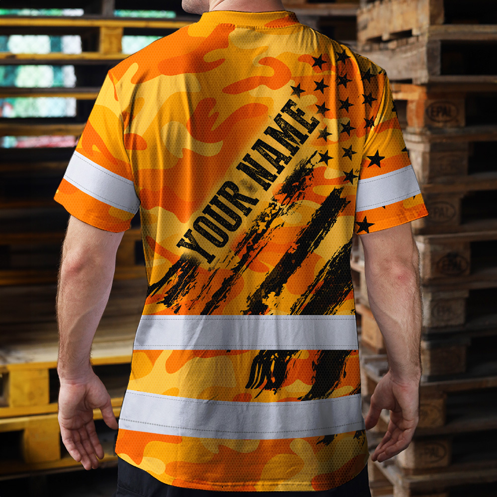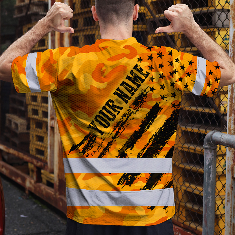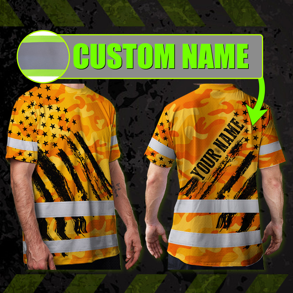 Hi Vis Shirt Reflective Tapes Camo Orange Neon US Flag Custom Name Safety Workwear