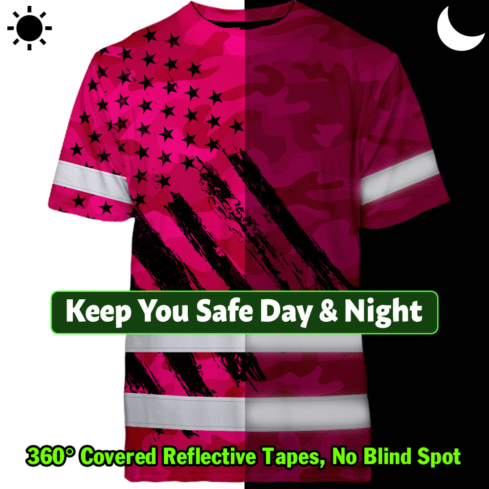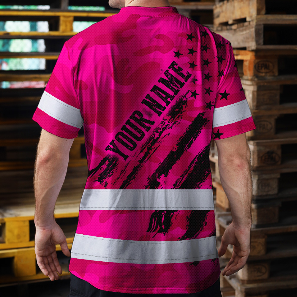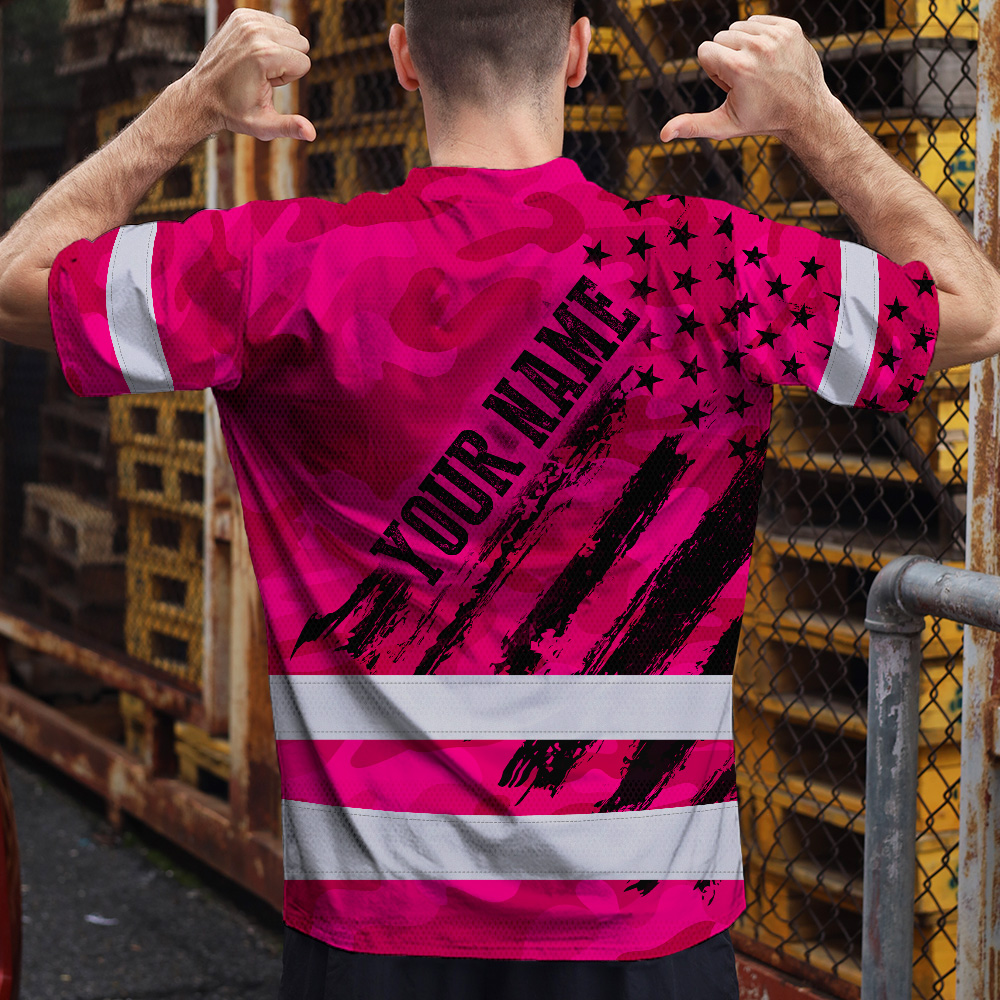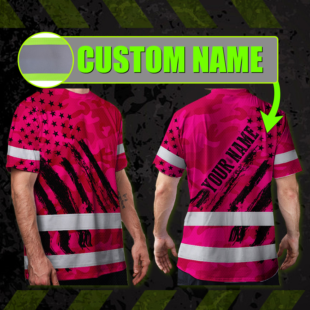 Hi Vis Shirt Reflective Tapes Camo Pink Neon US Flag Custom Name Safety Workwear