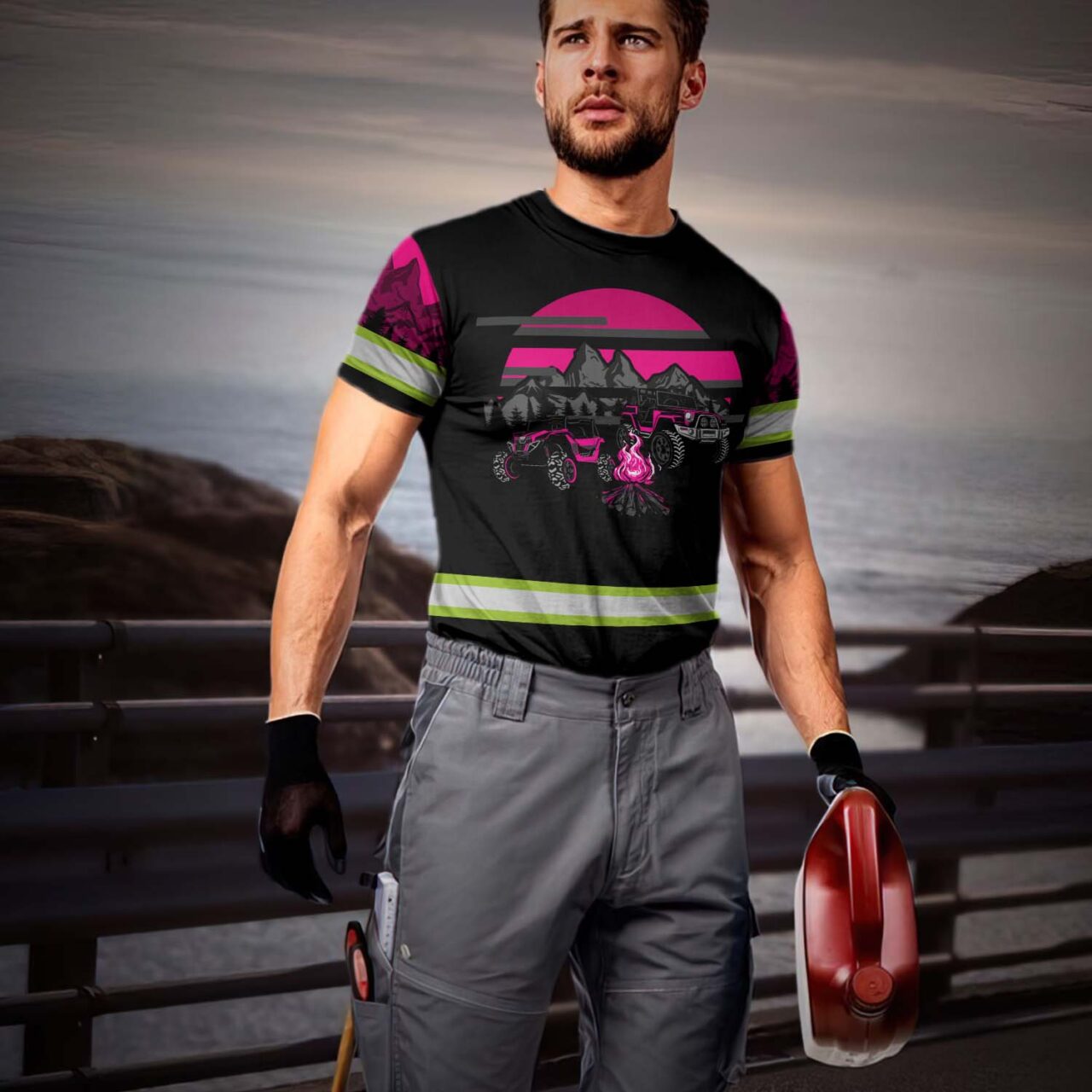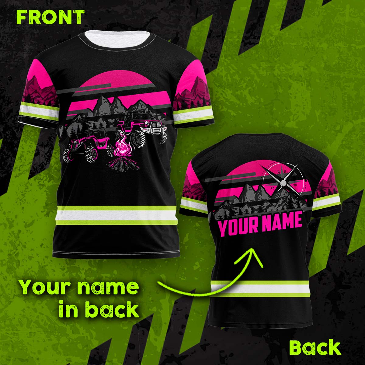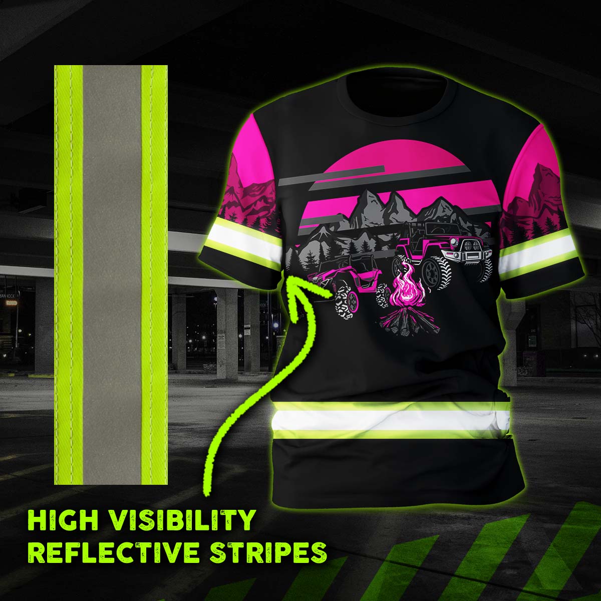 Hi Vis Shirt Reflective Tapes Camp Fire Custom Name Safety Workwear For Campers, Workers, Runners, Cyclists