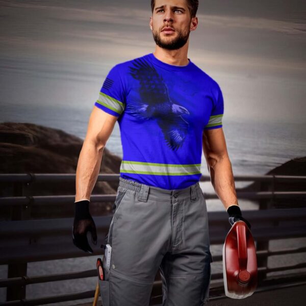 Hi Vis Shirt Reflective Tapes Eagle Fly US Flag Custom Name Safety
