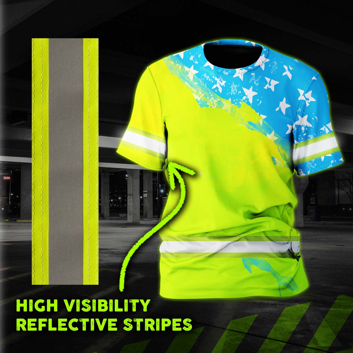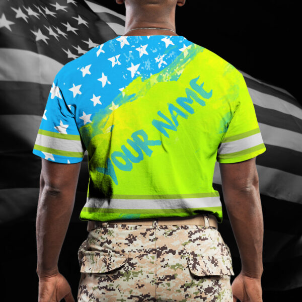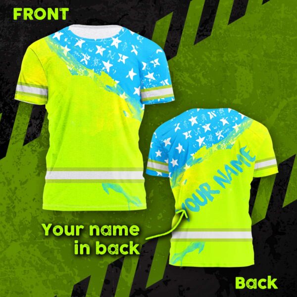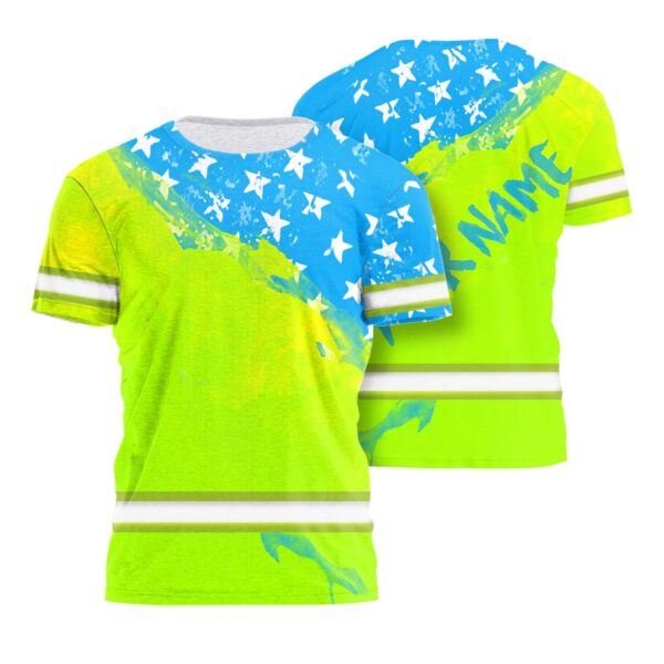 Hi Vis Shirt Reflective Tapes Green And Blue Neon US Flag Custom Name