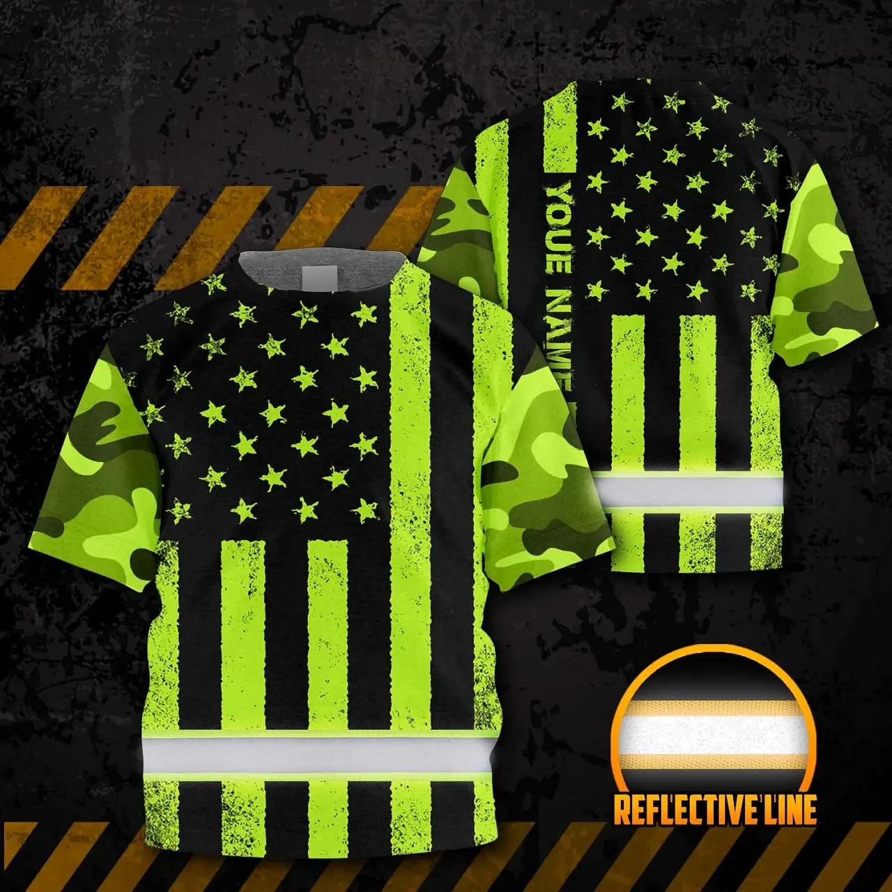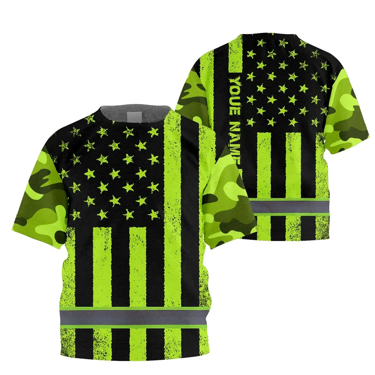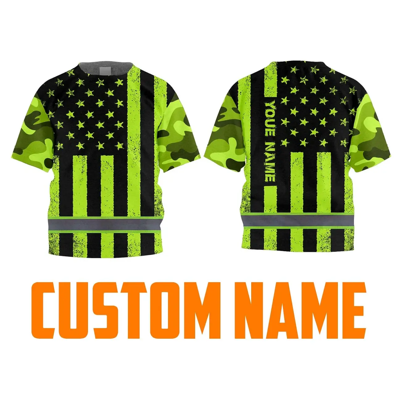 Hi Vis Shirt Reflective Tapes Green Camo Flag Custom Name For Kids