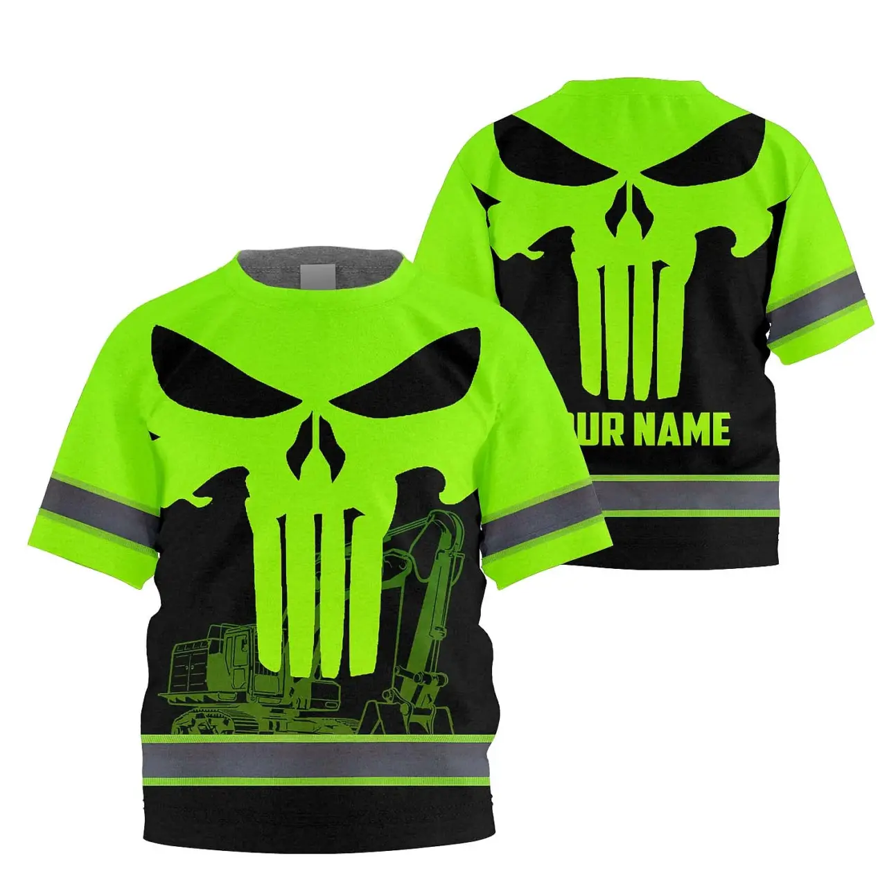 Hi Vis Shirt Reflective Tapes Green Excavator Operator Custom Name For Kids