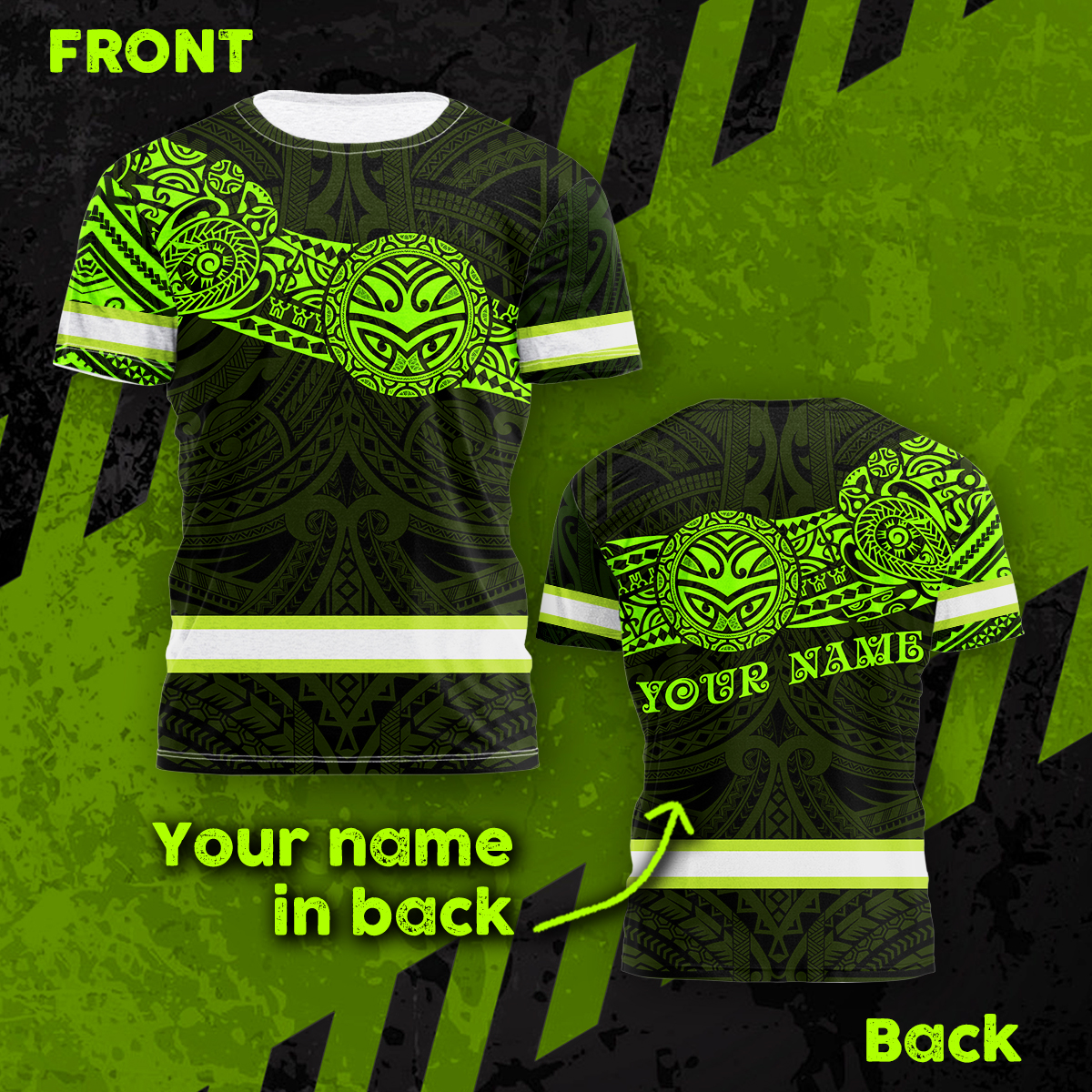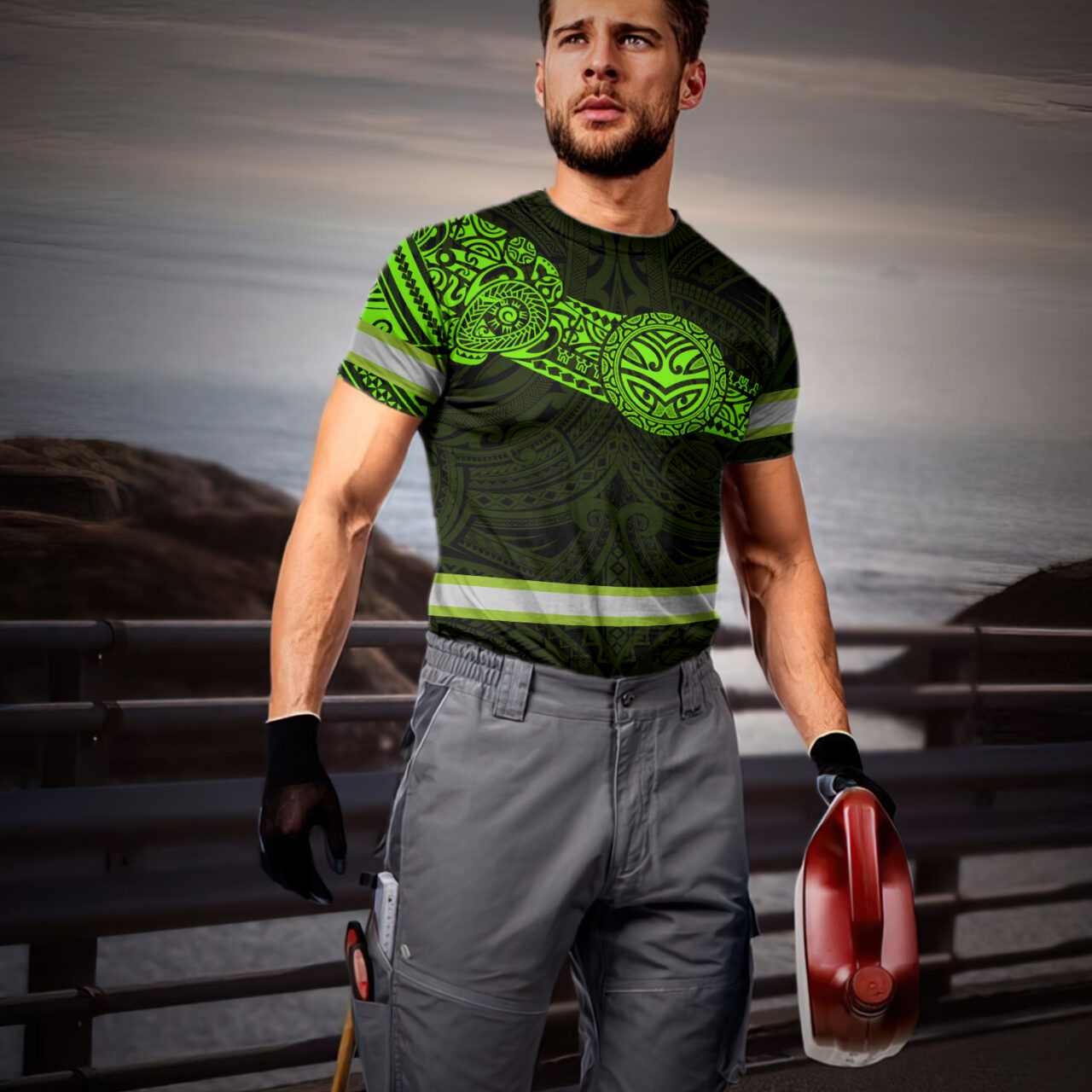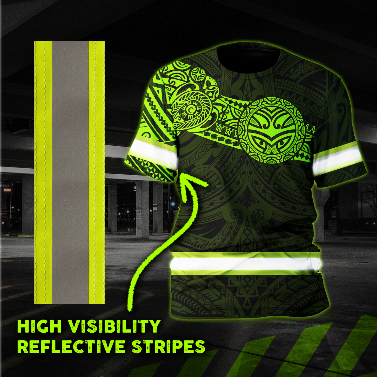 Hi Vis Shirt Reflective Tapes Green Neon 2 Hawaiian Polynesian Tribal Custom