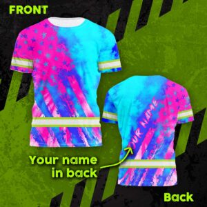 Custom High Vis Shirts Reflective Tapes Pink Neon And Blue US Flag Custom