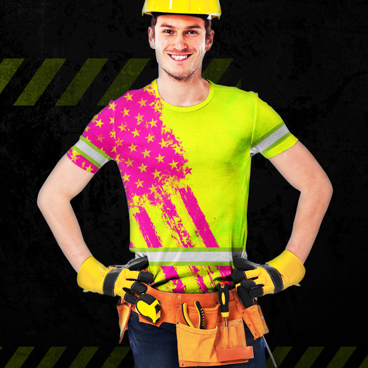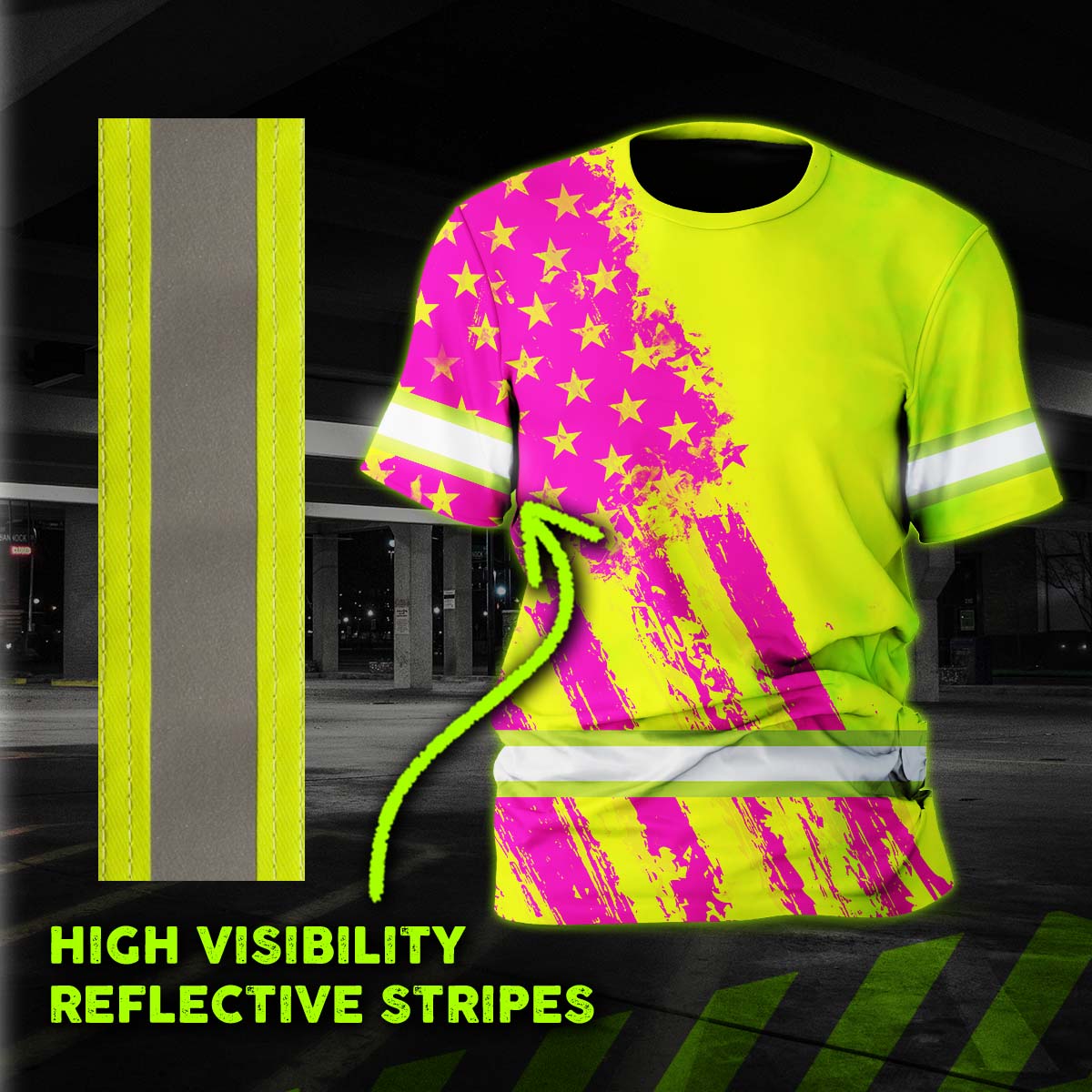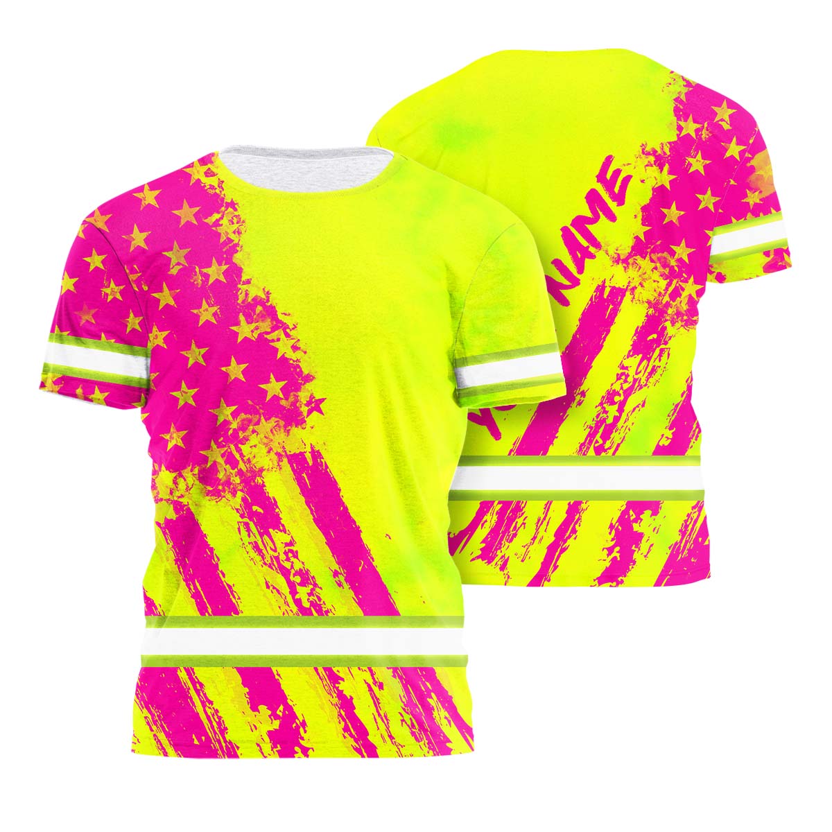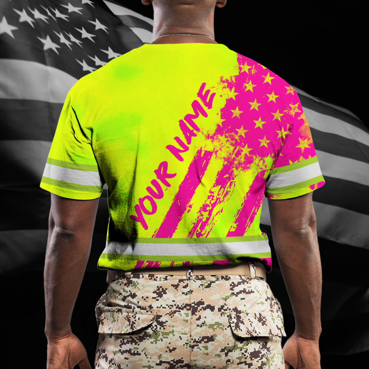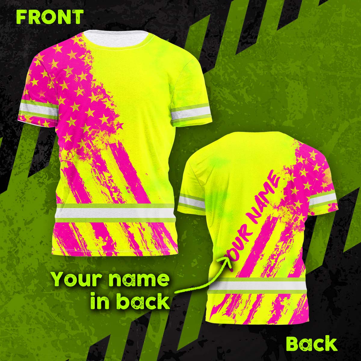 Hi Vis Shirt Reflective Tapes Green Neon And Pink US Flag Custom Name