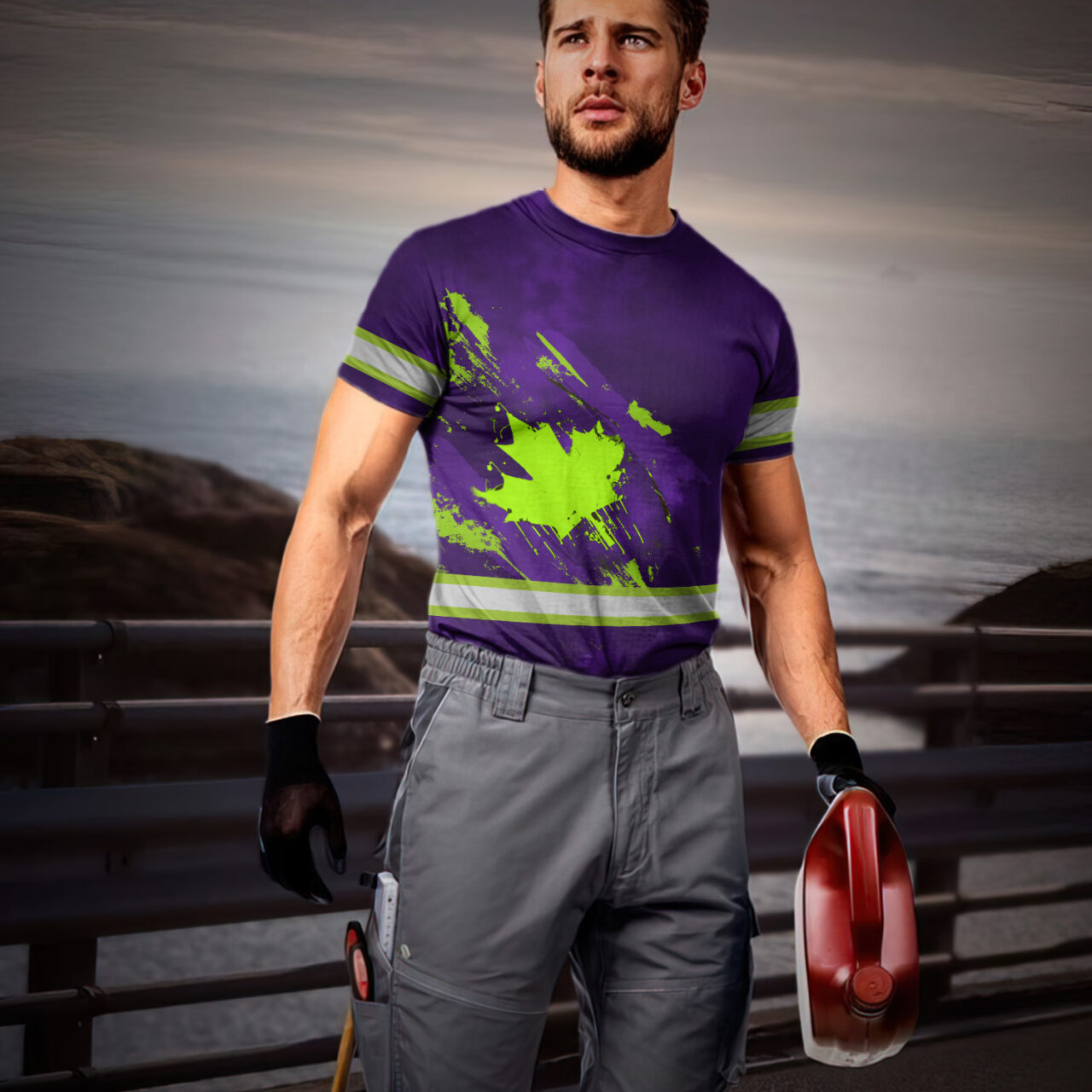 Hi Vis Shirt Reflective Tapes Green Neon And Violet Canada Flag