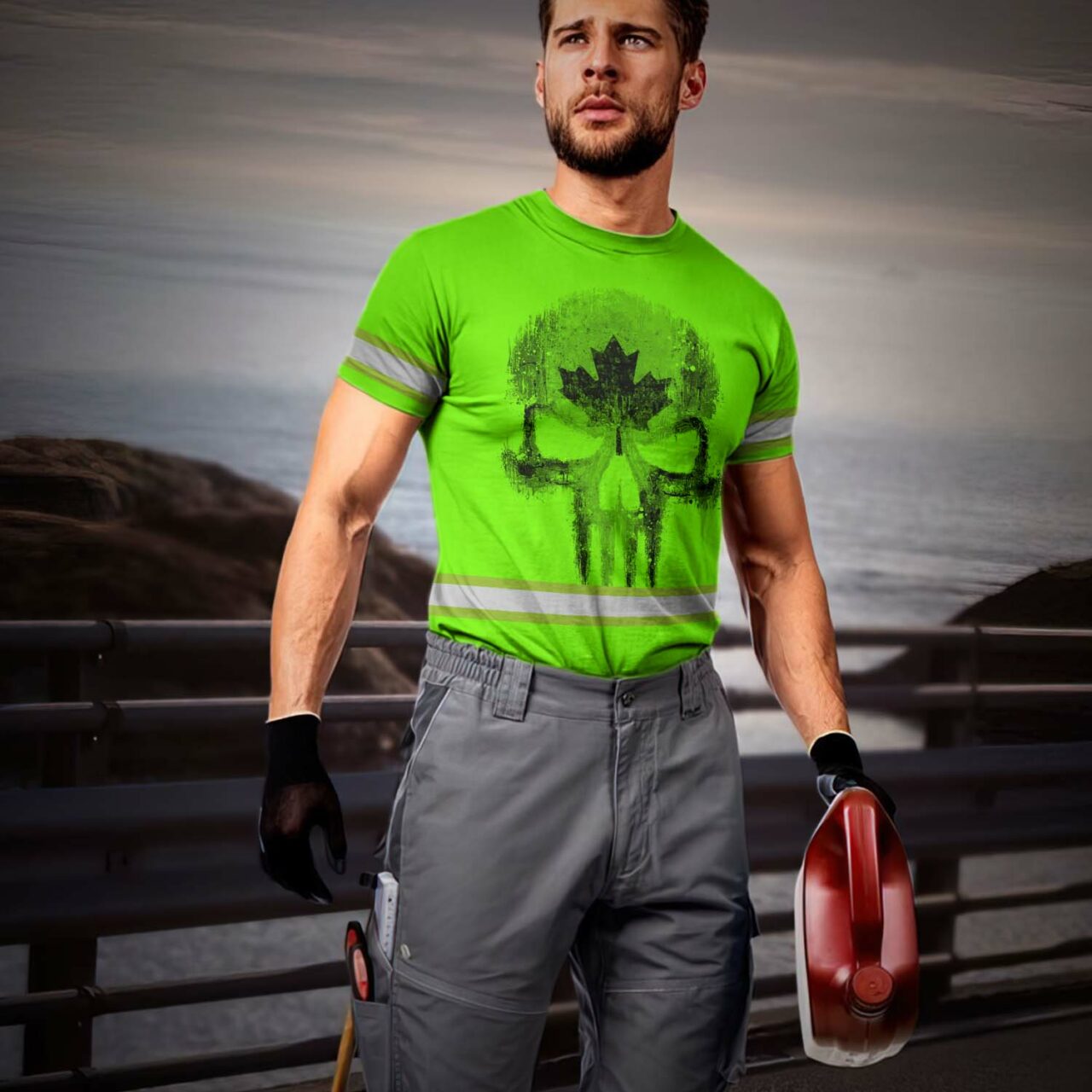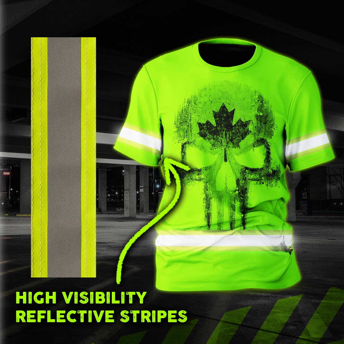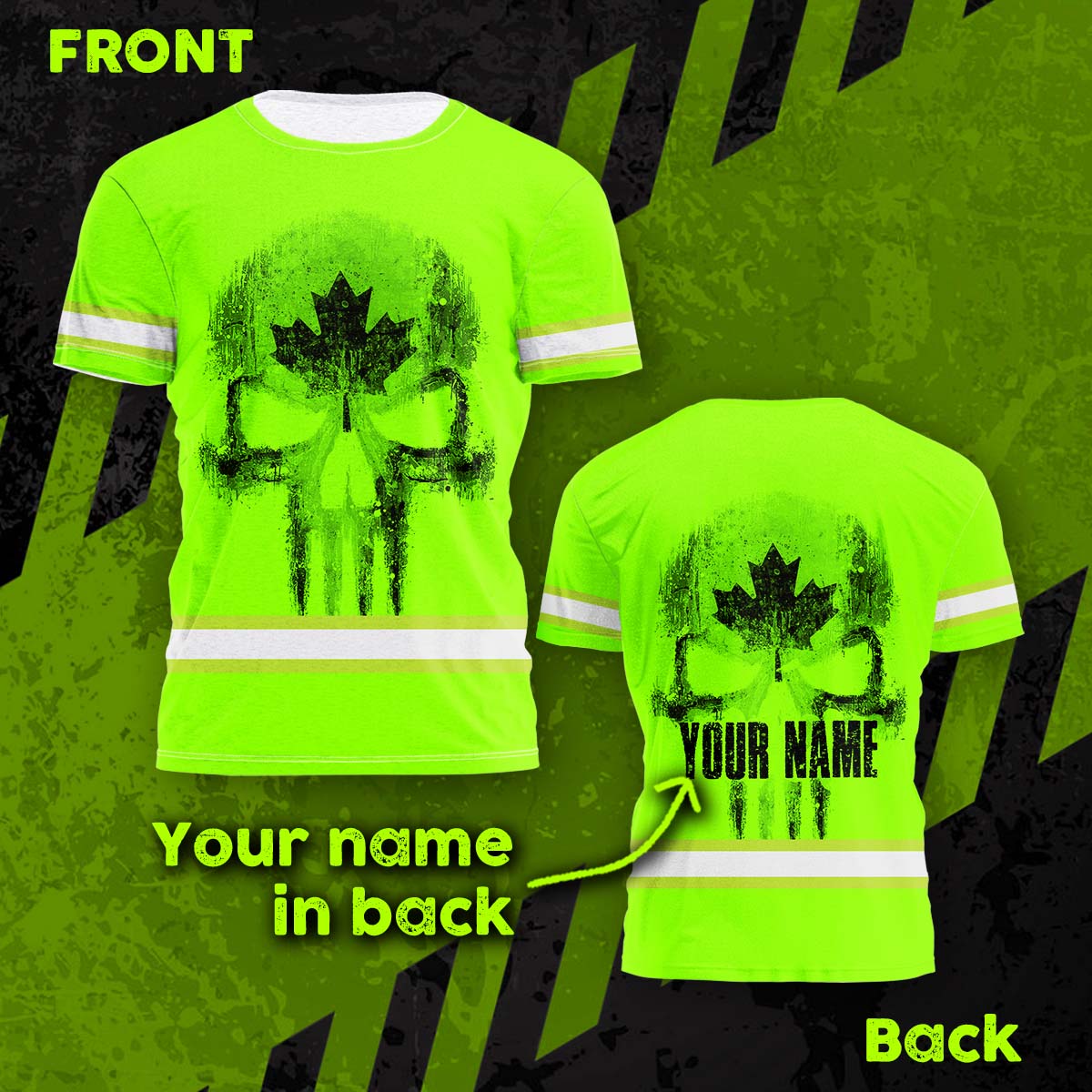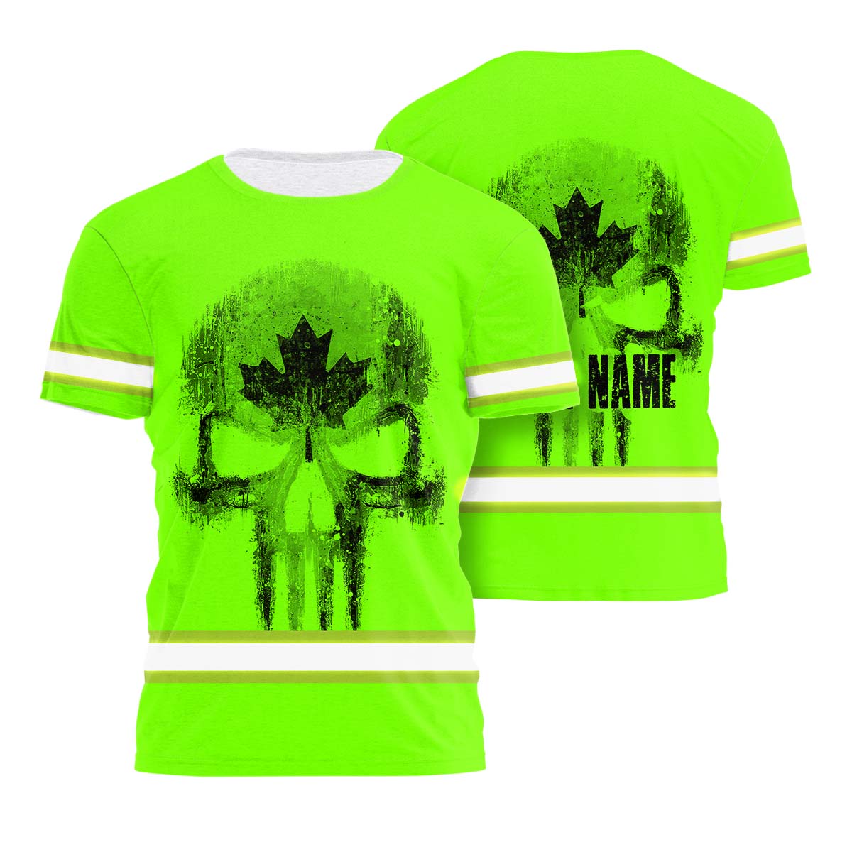 Hi Vis Shirt Reflective Tapes Green Neon Canada Flag Custom Name