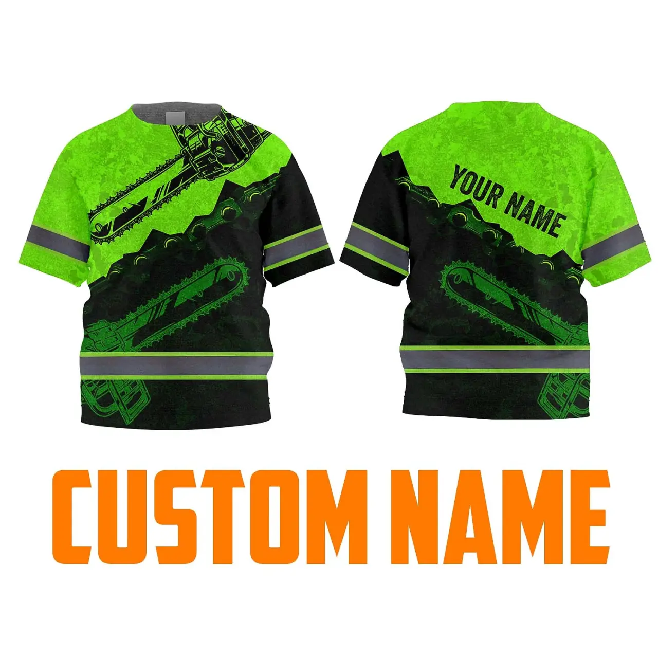 Hi Vis Shirt Reflective Tapes Green Neon Chainsaw Logger Custom Name For Kids