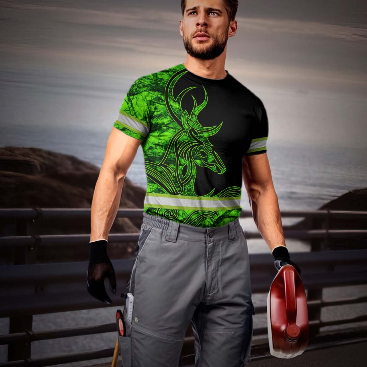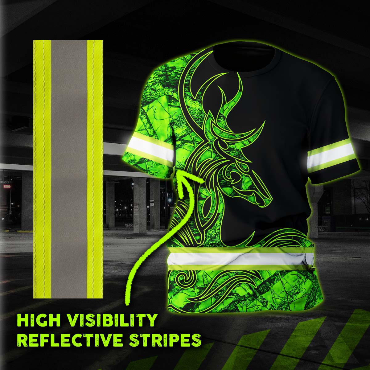 Hi Vis Shirt Reflective Tapes Green Neon Deer Camo Hunting Custom