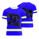 Hi Vis Shirt Reflective Tapes Blue Neon Forklift Custom Name Safety Workwear For Workers, Truckers, Operator, Cyclists, Patriotic