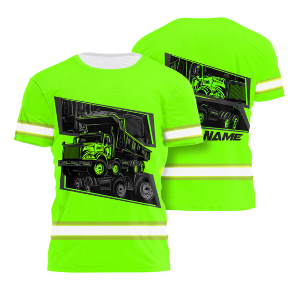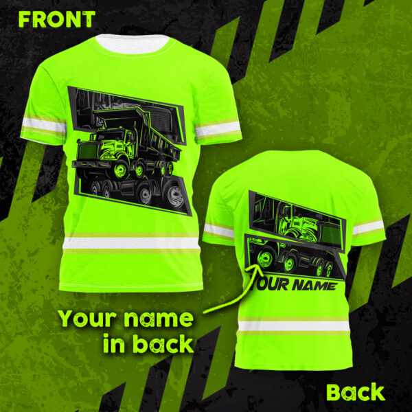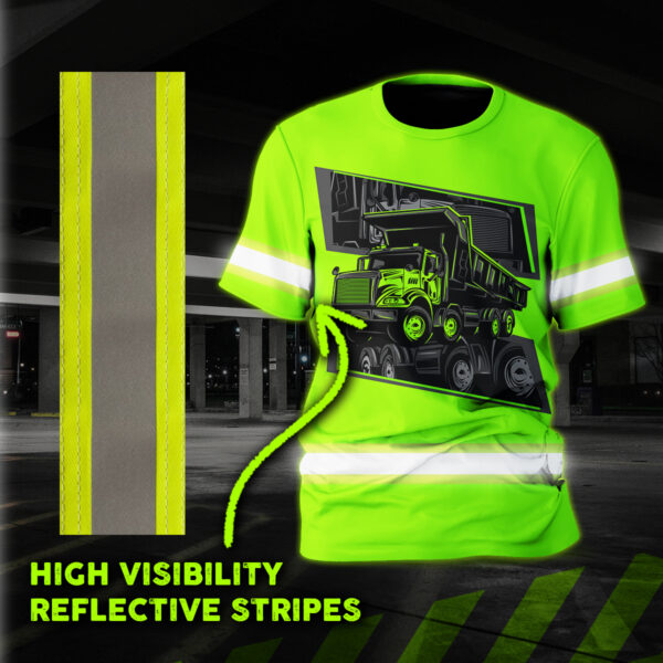 Hi Vis Shirt Reflective Tapes Green Neon Dump Truck Custom Name Safety Workwear For Workers, Truckers, Operator, Cyclists, Patriotic quantity
