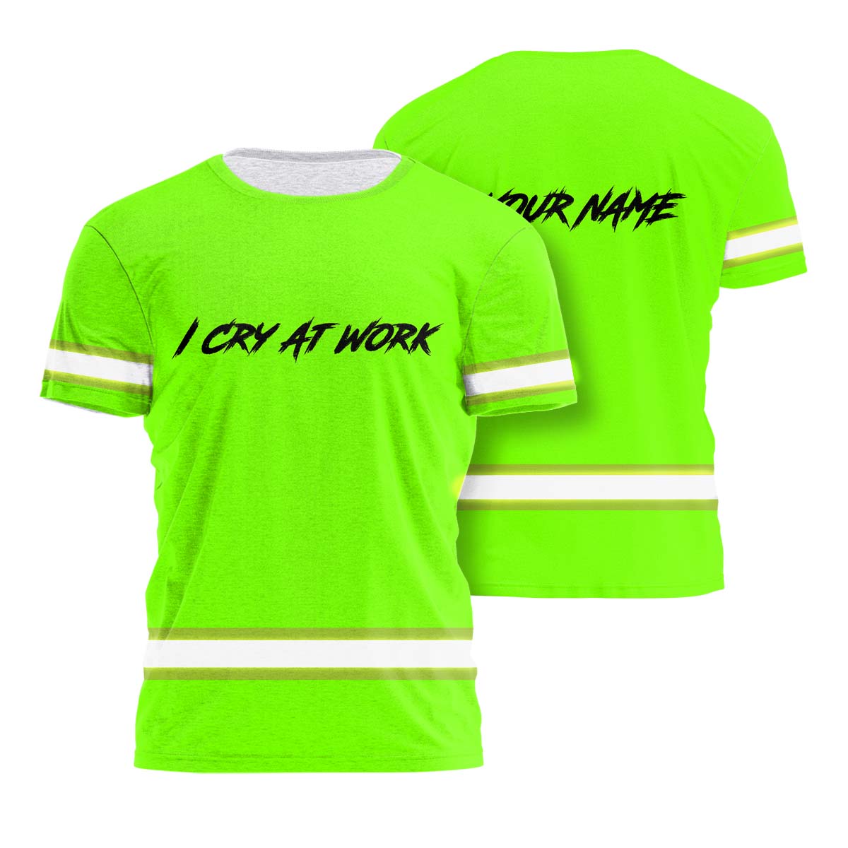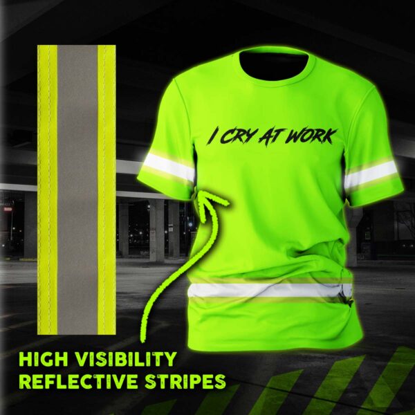 Hi Vis Shirt Reflective Tapes Green Neon I Cry At Work Custom Name Safety Workwear For Workers, Operator, Cyclists, Patriotic quantity