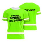 Hi Vis Shirt Reflective Tapes Green Neon I Work Harder Custom Name Safety Workwear For Workers, Operator, Cyclists, Patriotic