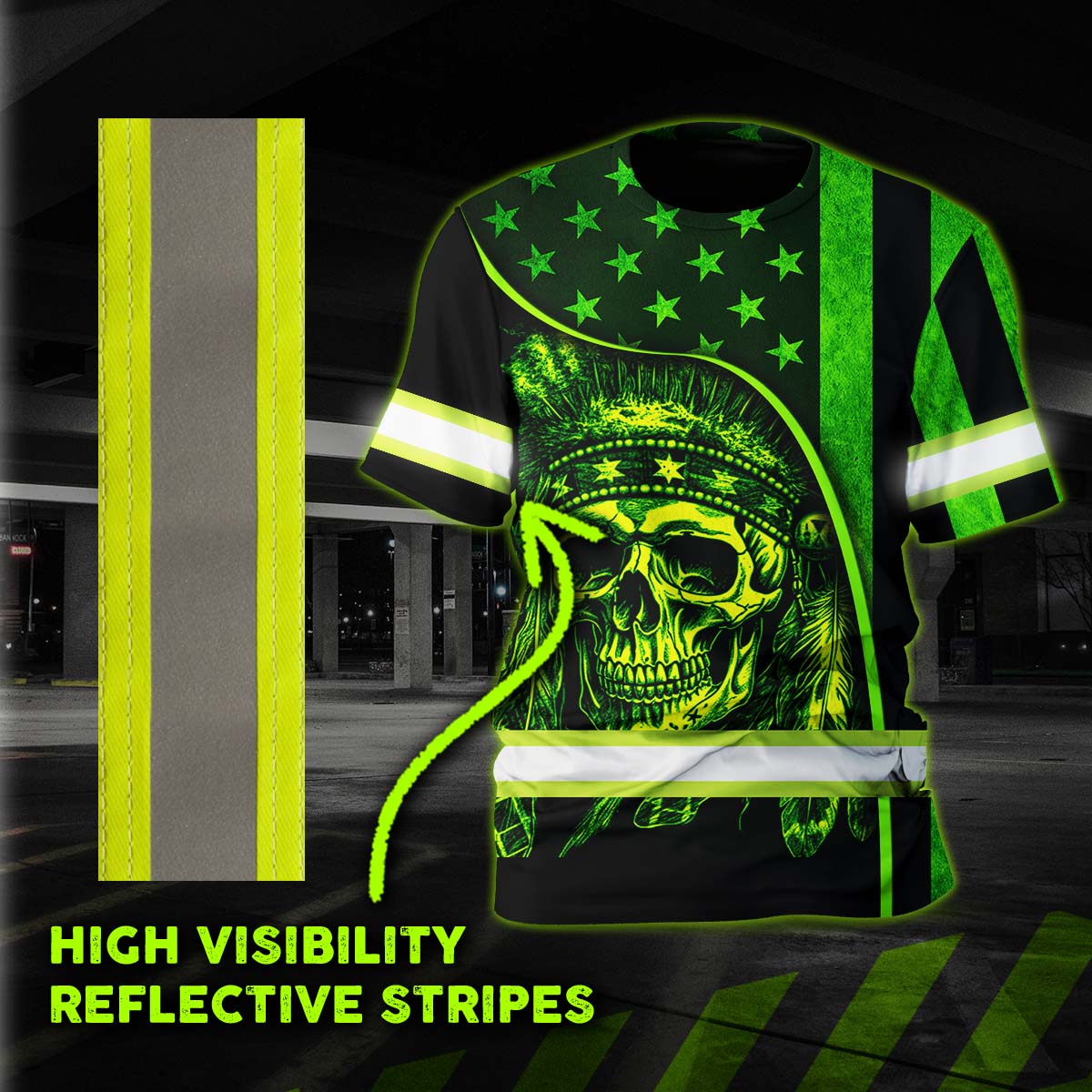 Hi Vis Shirt Reflective Tapes Green Neon Native Workwear Safety For Worker, Trucker, Operator