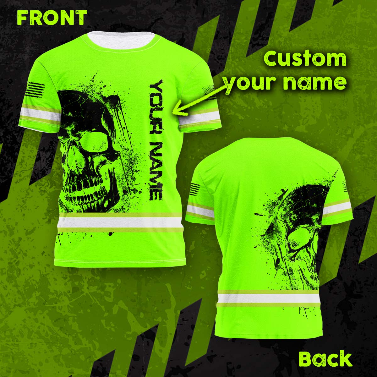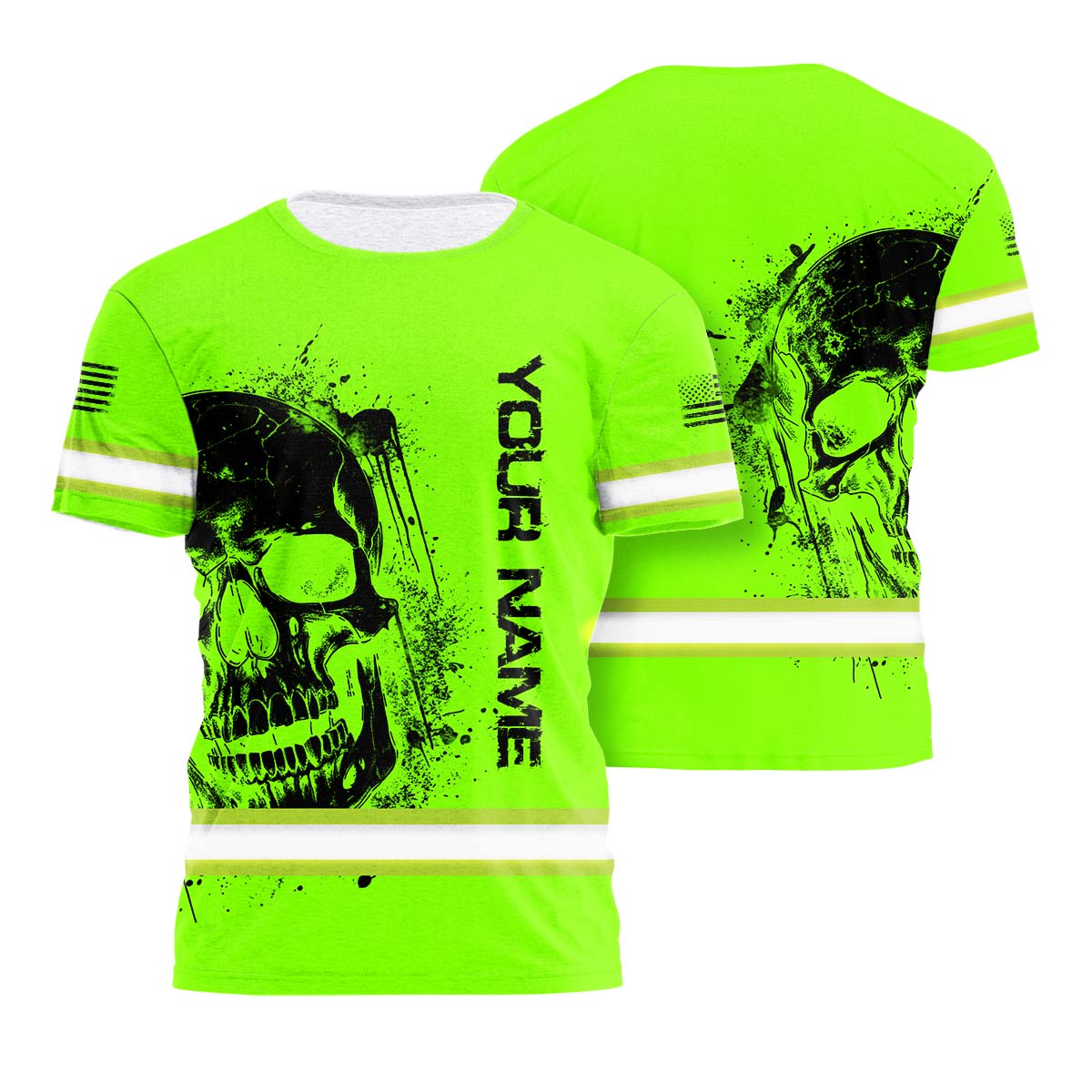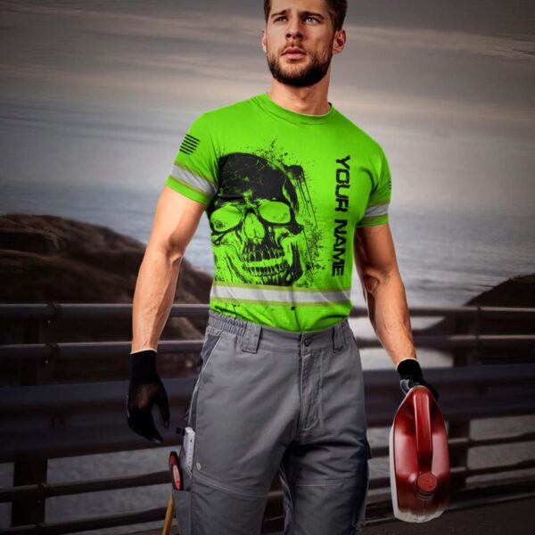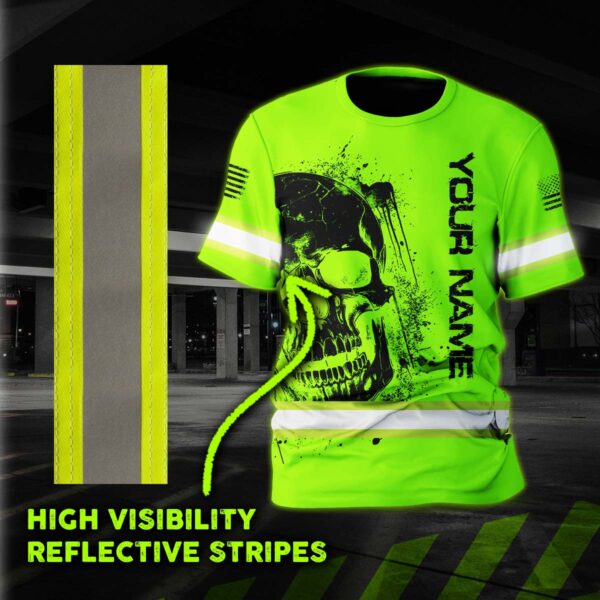 Hi Vis Shirt Reflective Tapes Green Neon Skull And Flag Custom Name