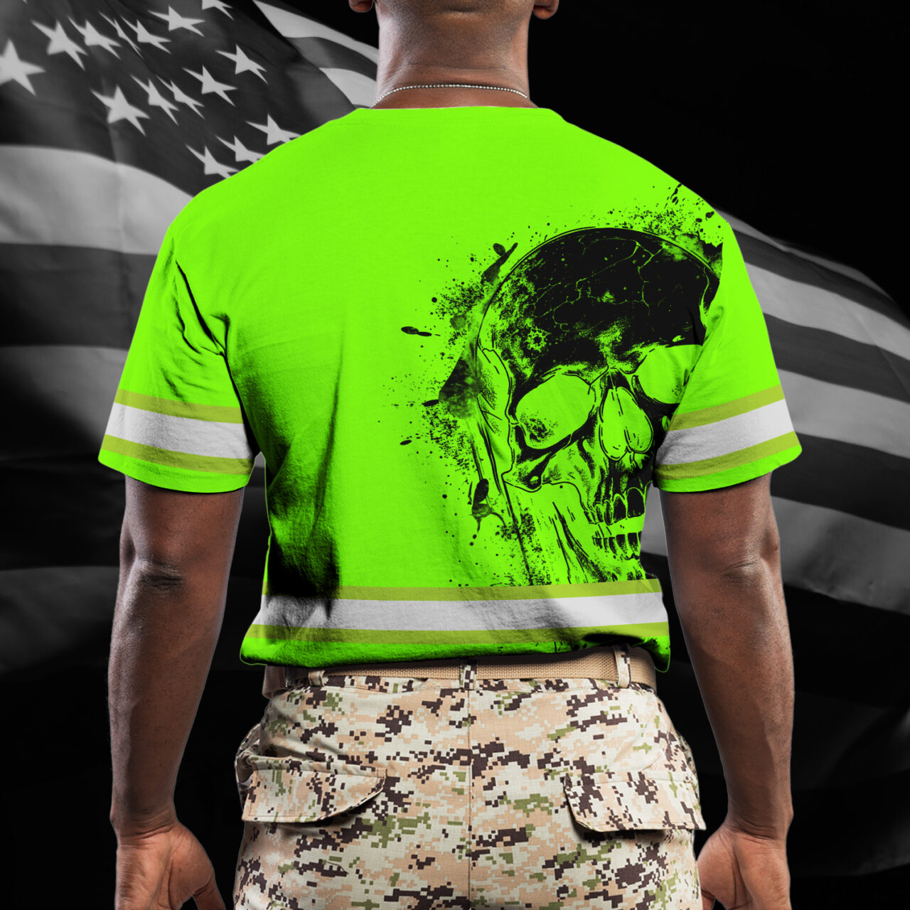 Hi Vis Shirt Reflective Tapes Mint Neon US Flag Skull Custom Name