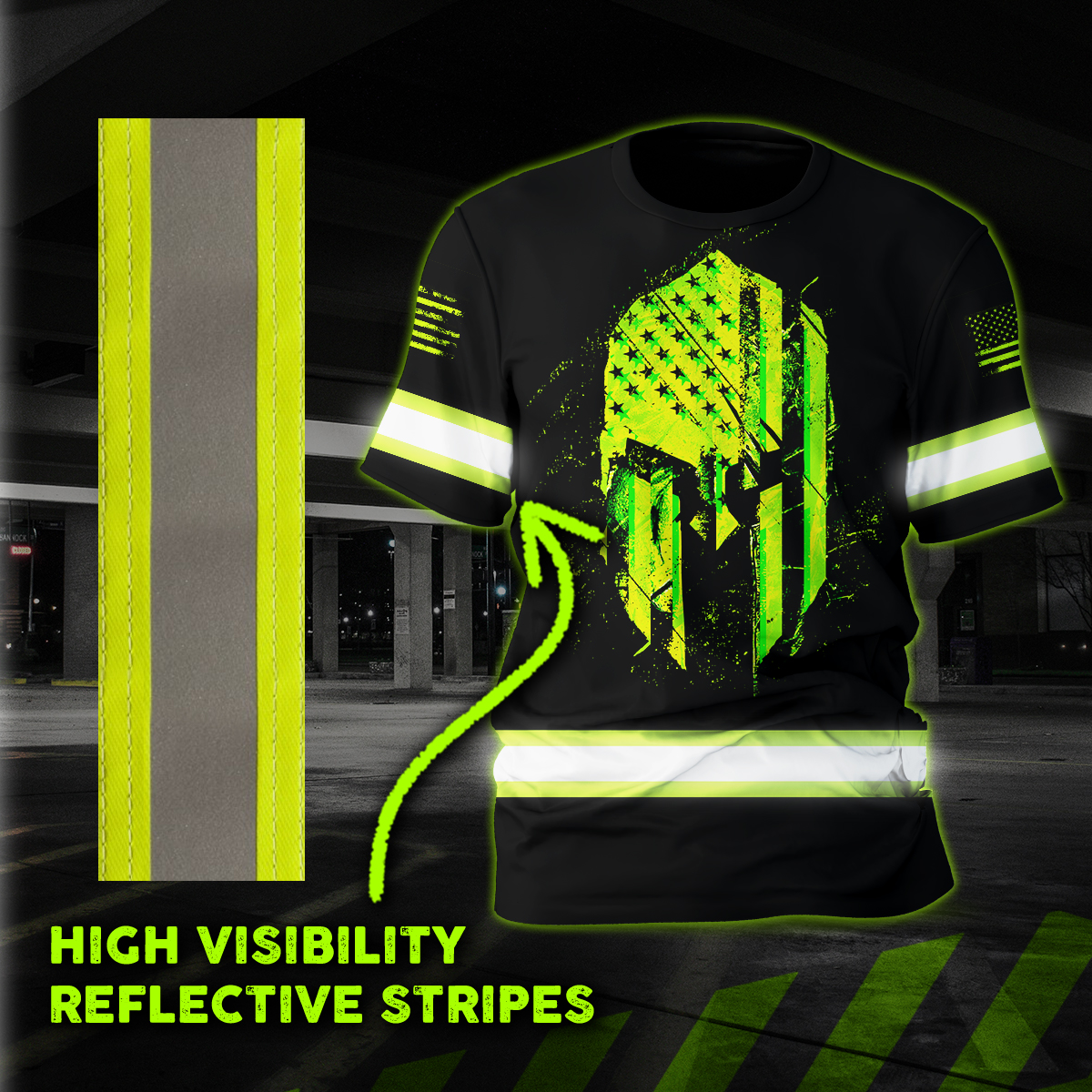 Custom High Vis Shirts Reflective Tapes Green Neon And Black US Flag