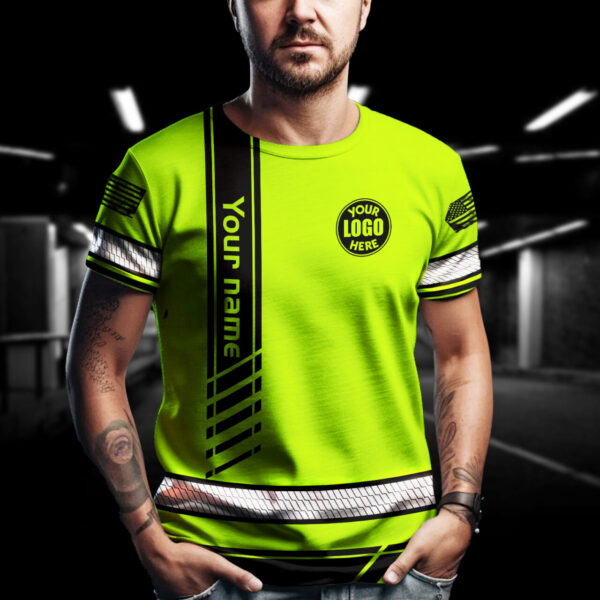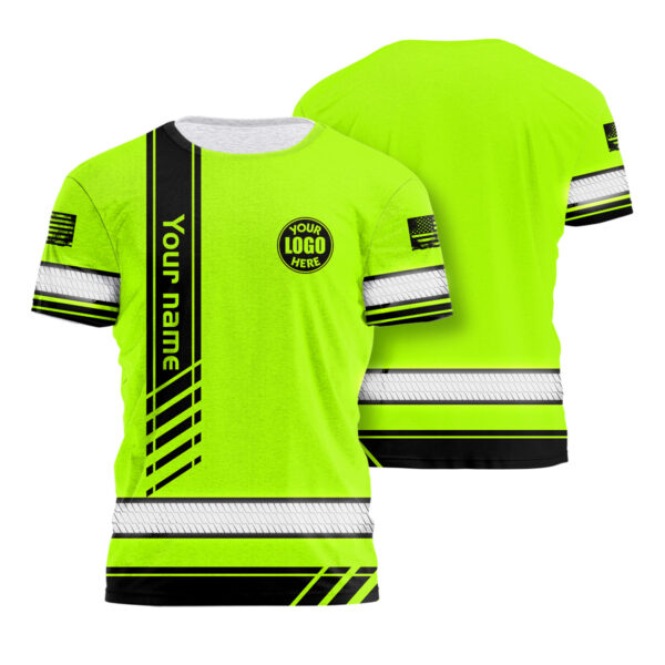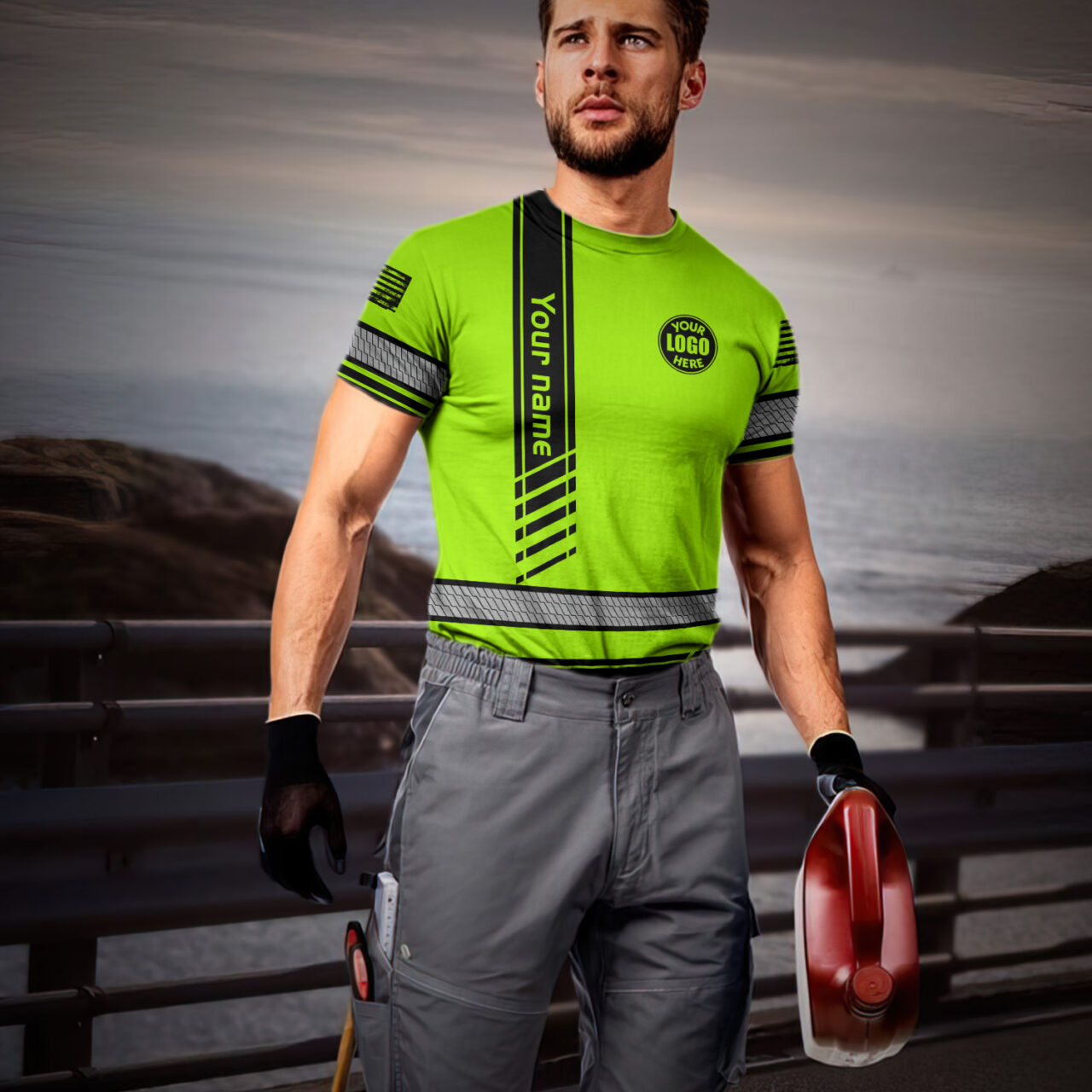 Be the first to review “Hi Vis Shirt Reflective Tapes Green Neon Uniform US Flag Custom Name And Logo Safety Workwear For Team, Group, Company”