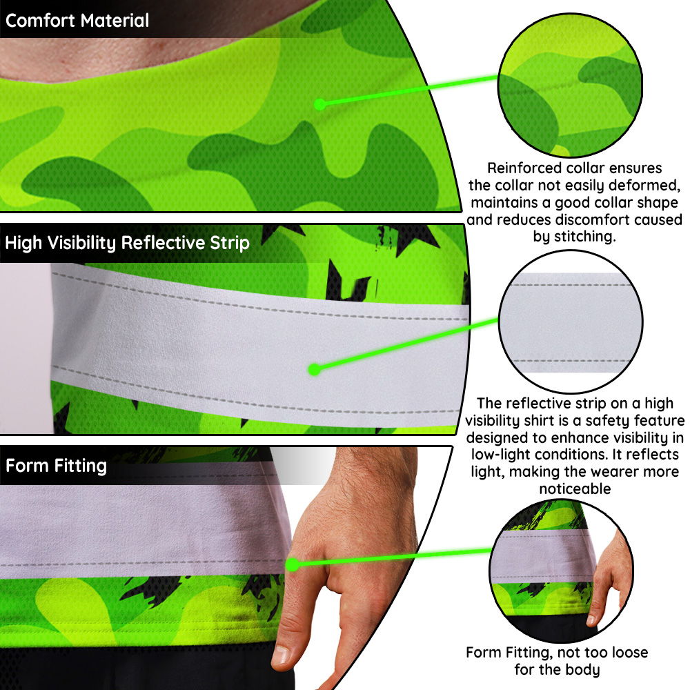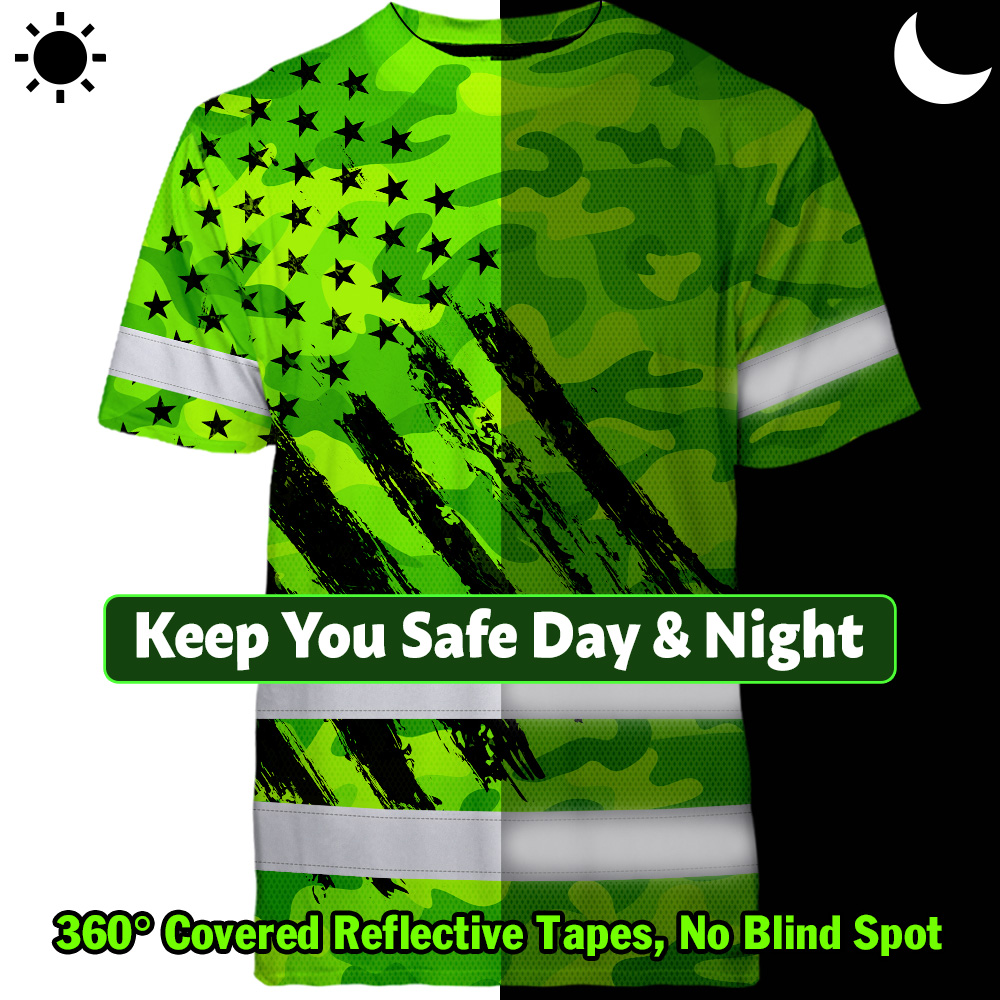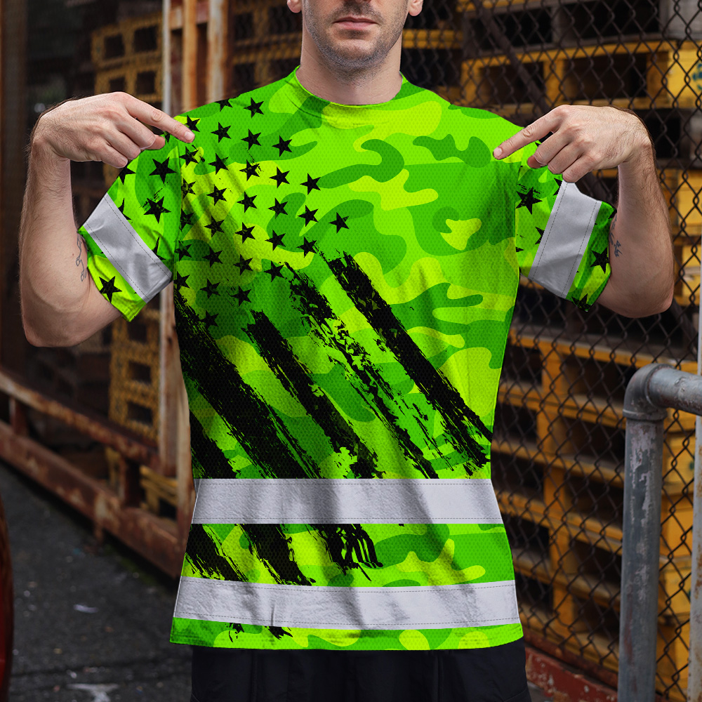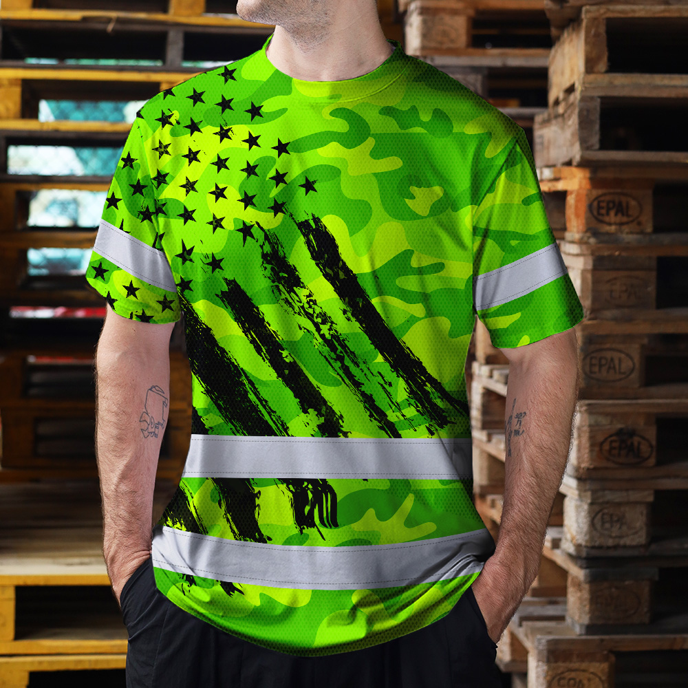 Hi Vis Shirt Reflective Tapes Green Neon US Flag Custom Name Safety Workwear
