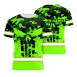 Hi Vis Shirt Reflective Tapes Green Neon Camo Skull Custom Name And Logo