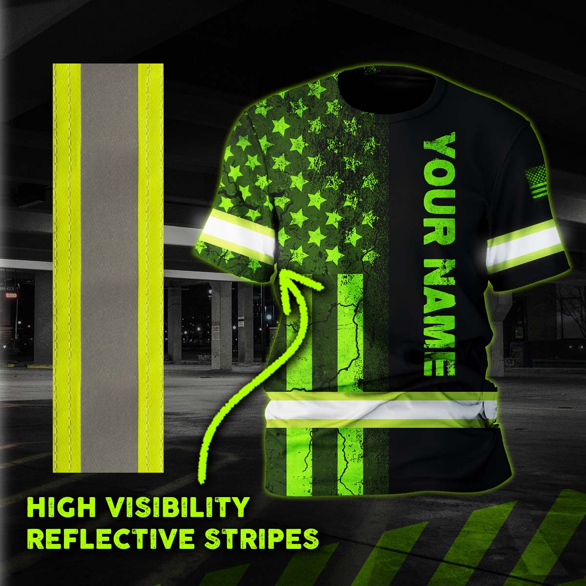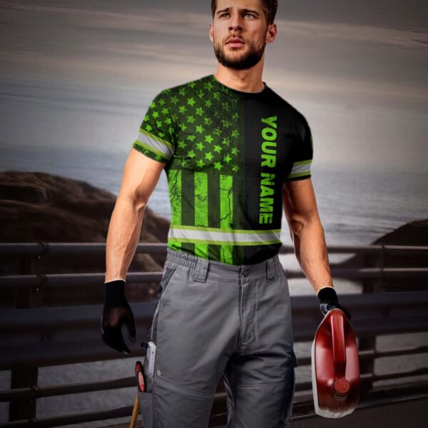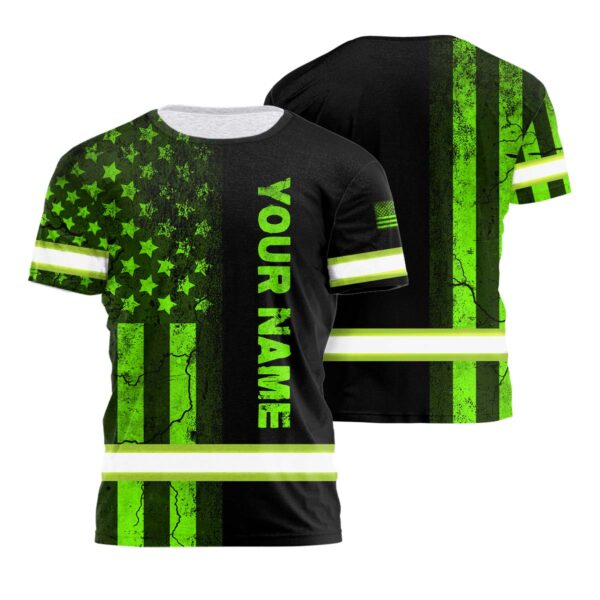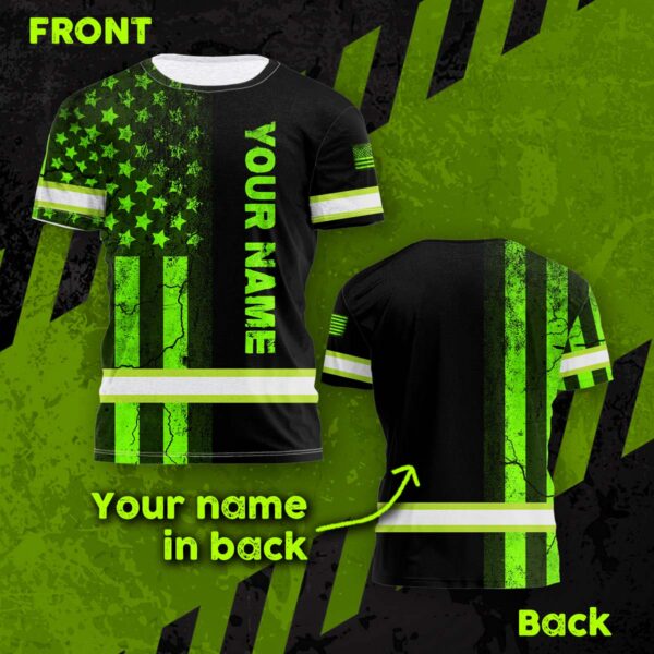 Hi Vis Shirt Reflective Tapes Green Neon US Flag Half Custom Name