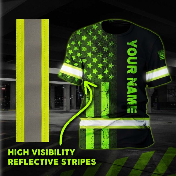 Hi Vis Shirt Reflective Tapes Green Neon US Flag Half Custom Name quantity