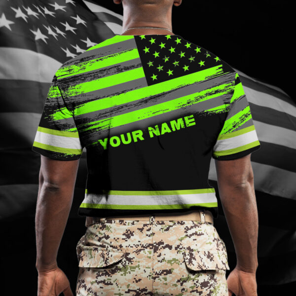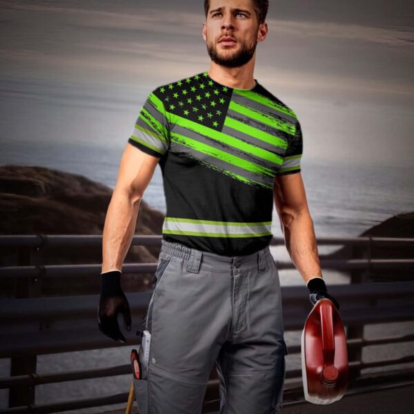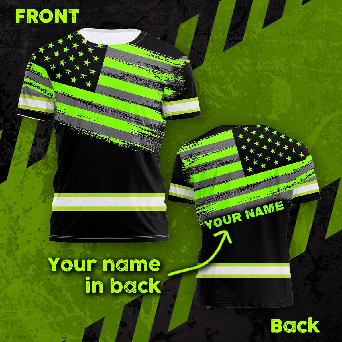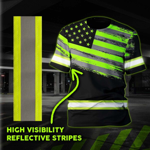Hi Vis Shirt Reflective Tapes Green Neon US Flag Patriotic Custom