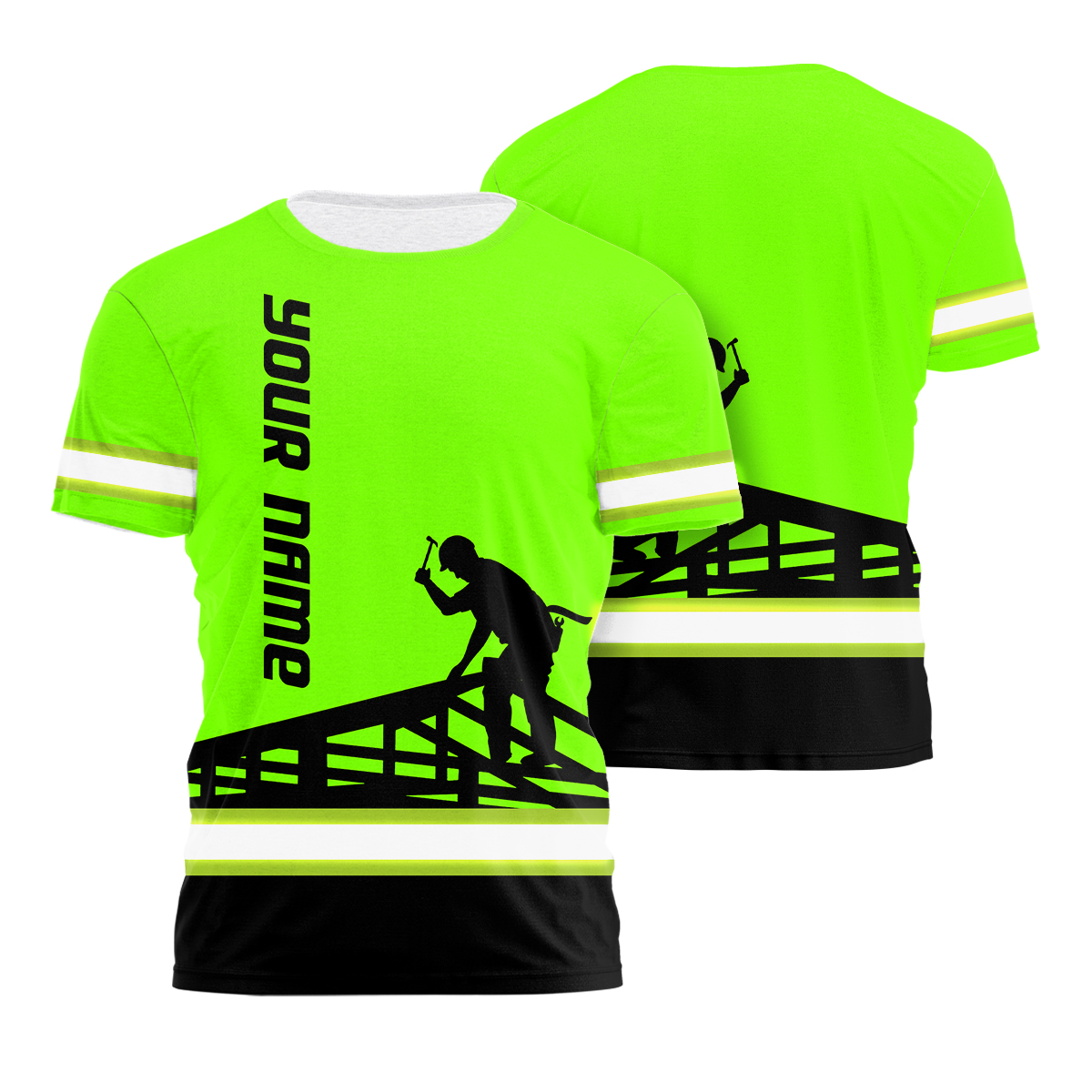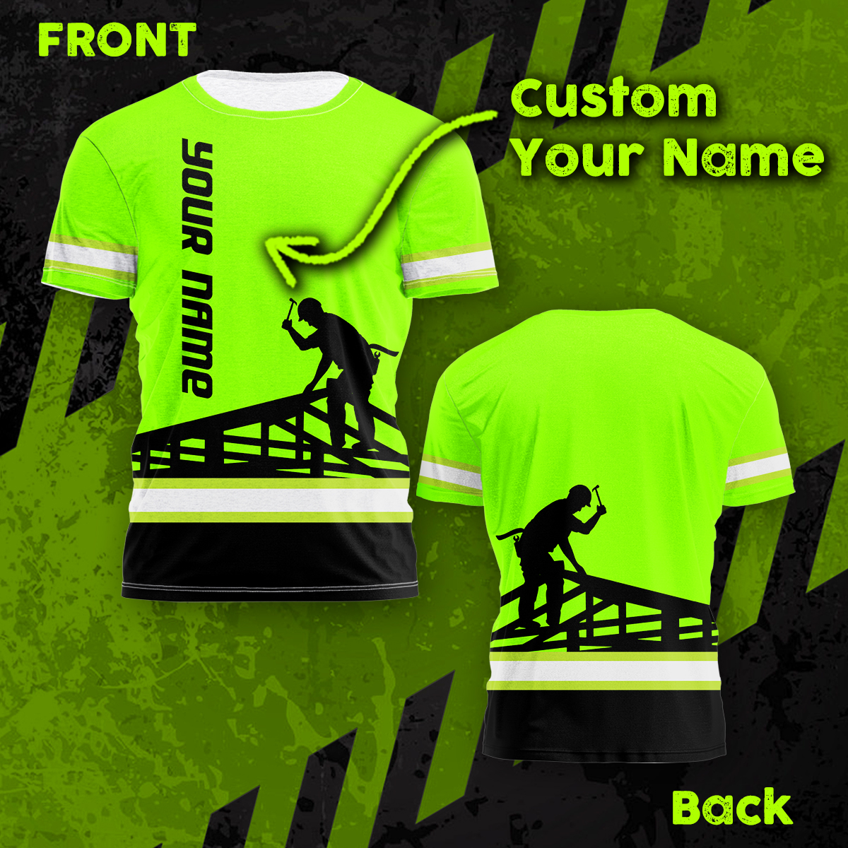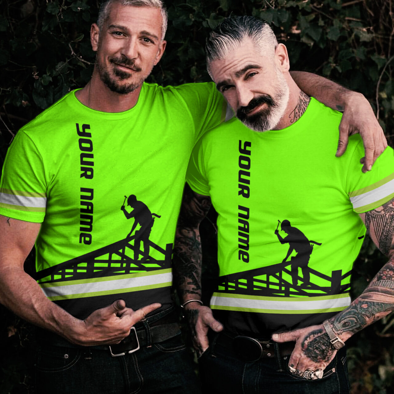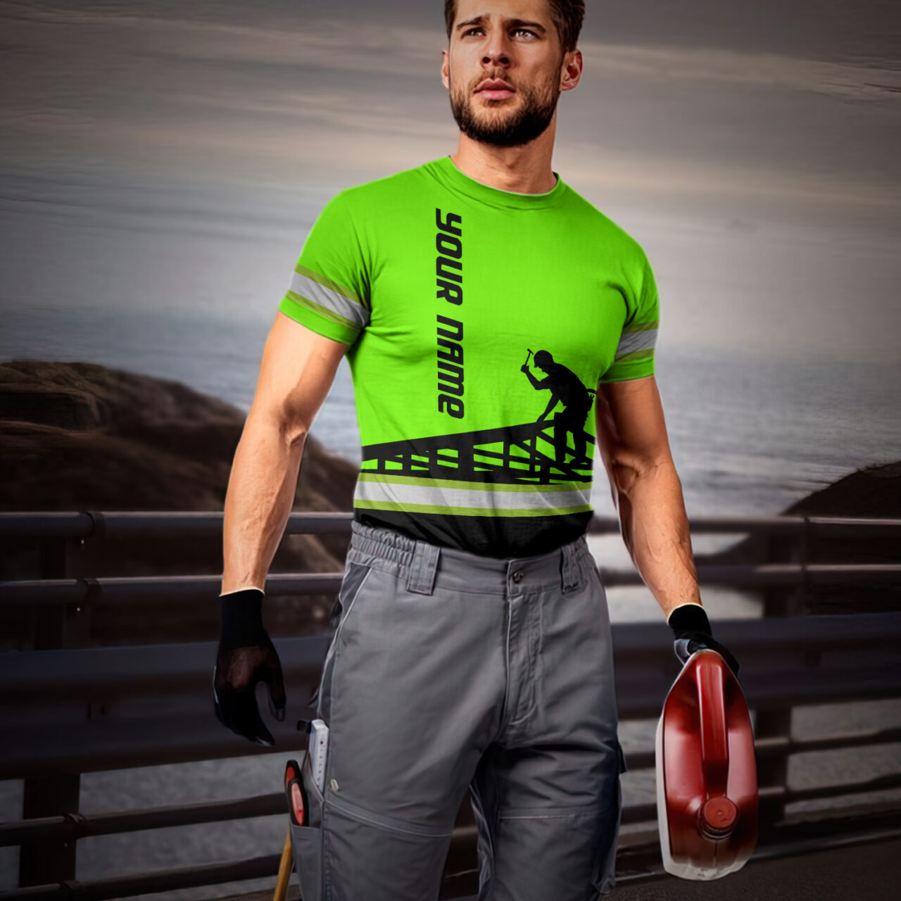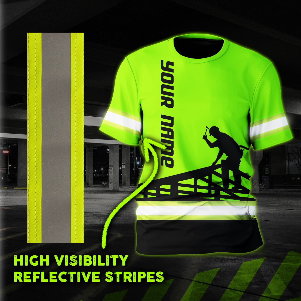 Hi Vis Shirt Reflective Tapes Green Roofer Custom Name Safety Workwear
