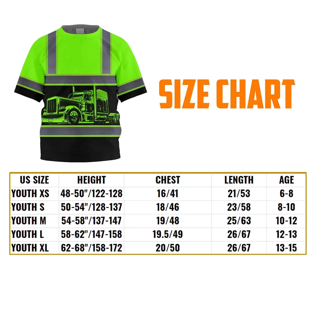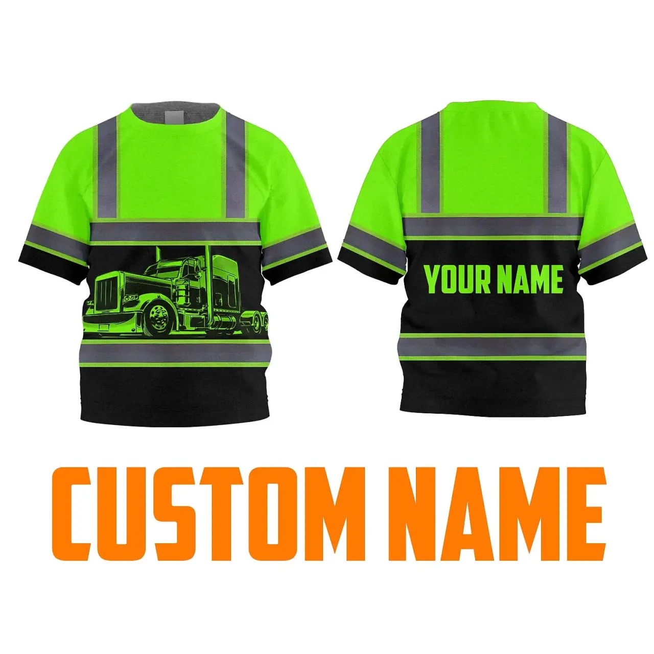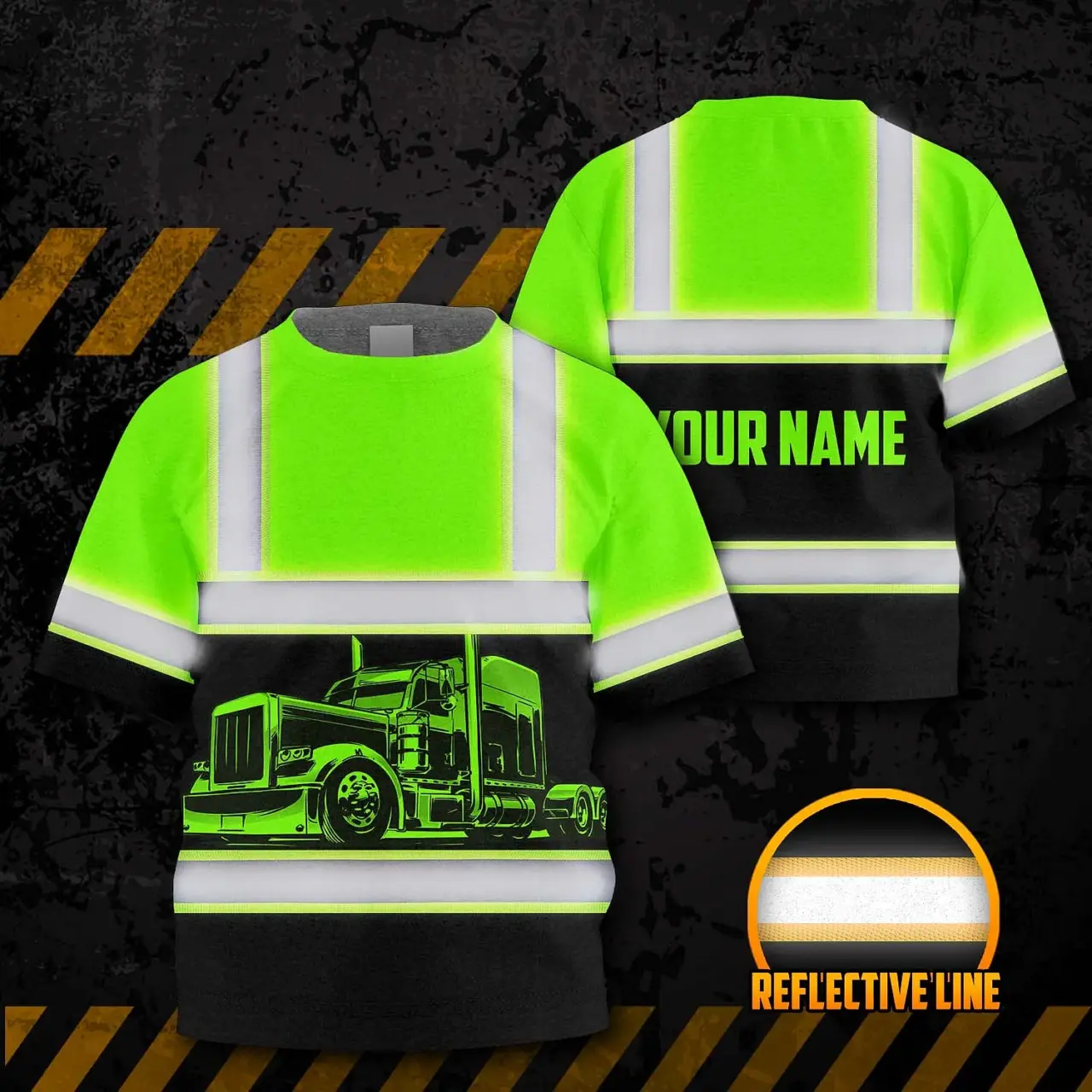 Hi Vis Shirt Reflective Tapes Green Semi Truck Driver Custom Name For Kids