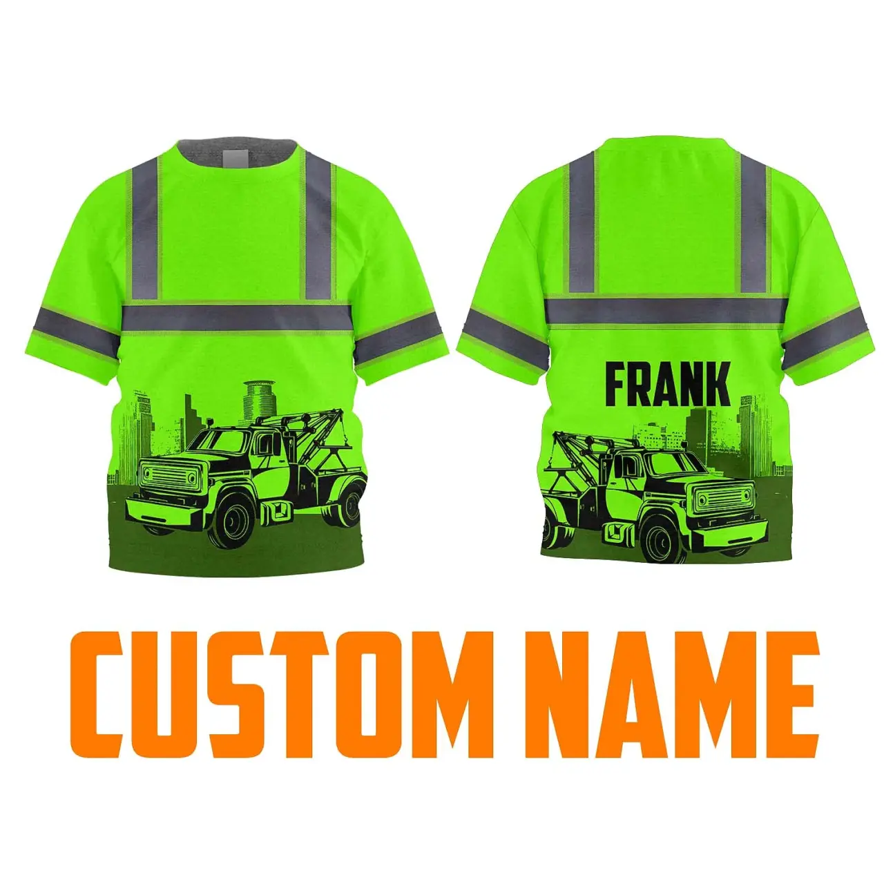 Hi Vis Shirt Reflective Tapes Green Tow Truck Driver Custom Name For Kids
