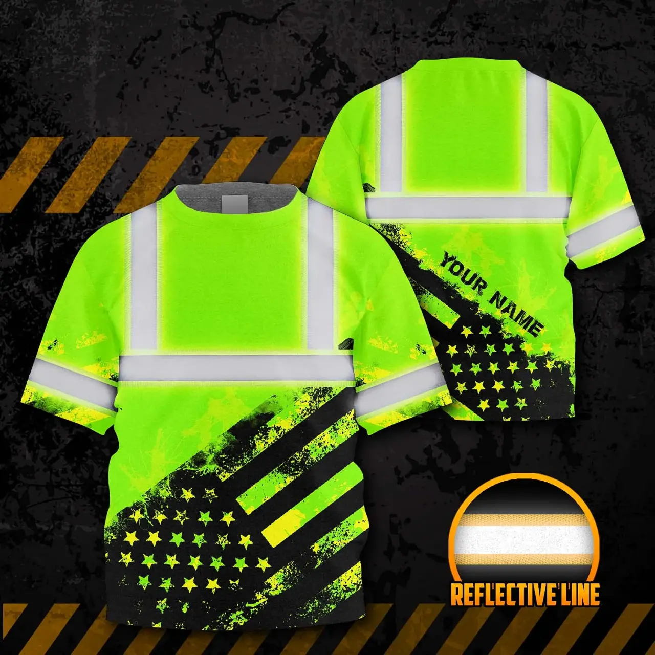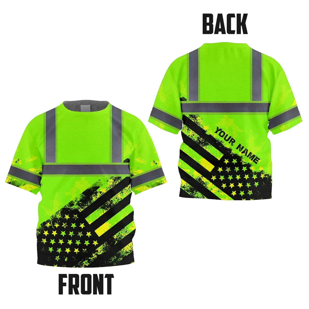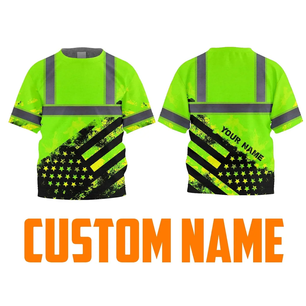 Hi Vis Shirt Reflective Tapes Green US Flag Custom Name For Kids
