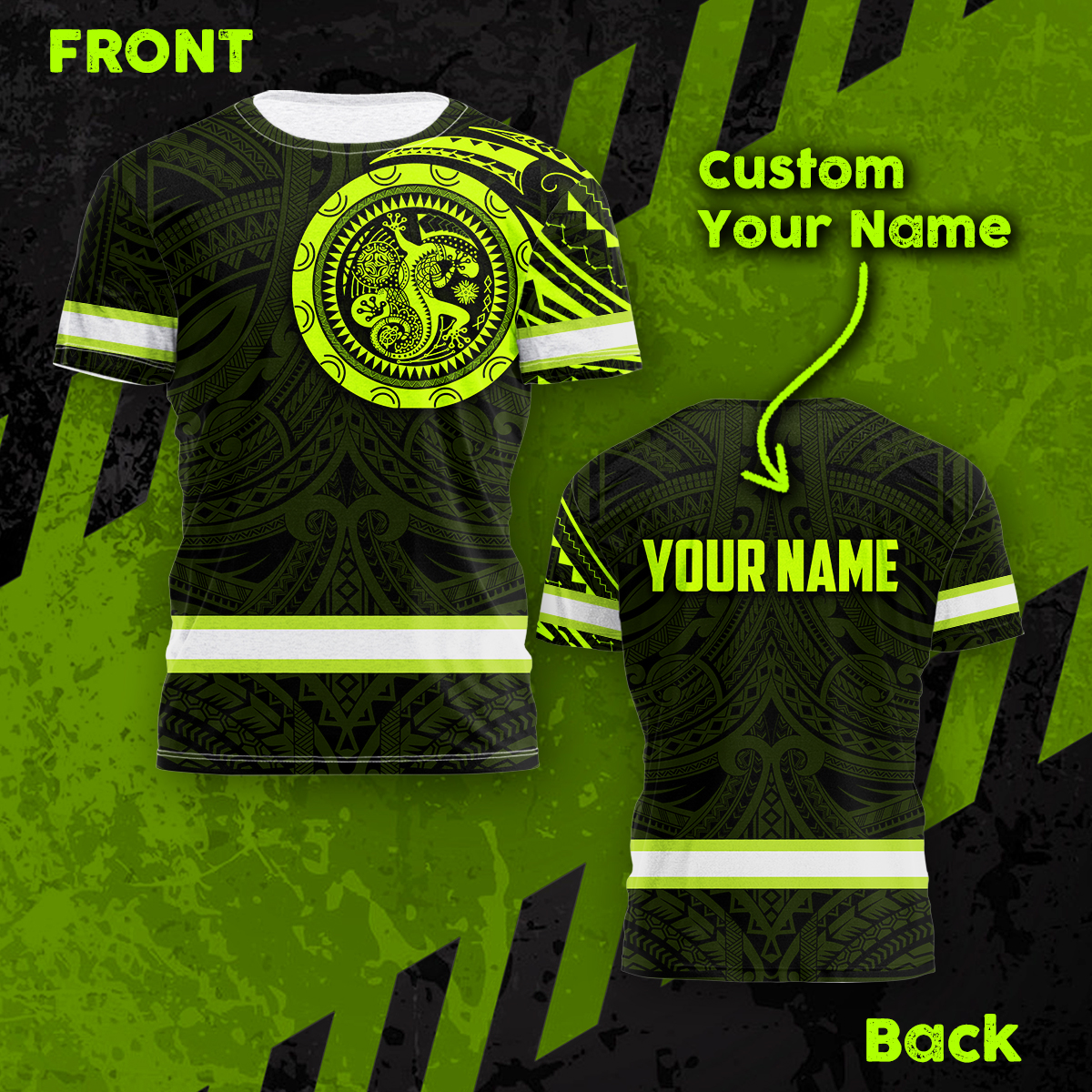 Hi Vis Shirt Reflective Tapes Hawaiian Gecko Custom Name Safety Workwear For Workers, Runners, Cyclists, Patriotic Description