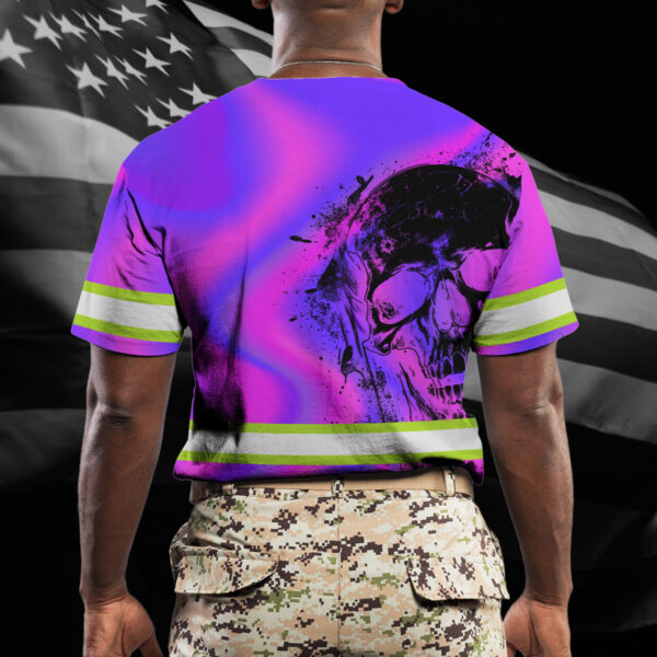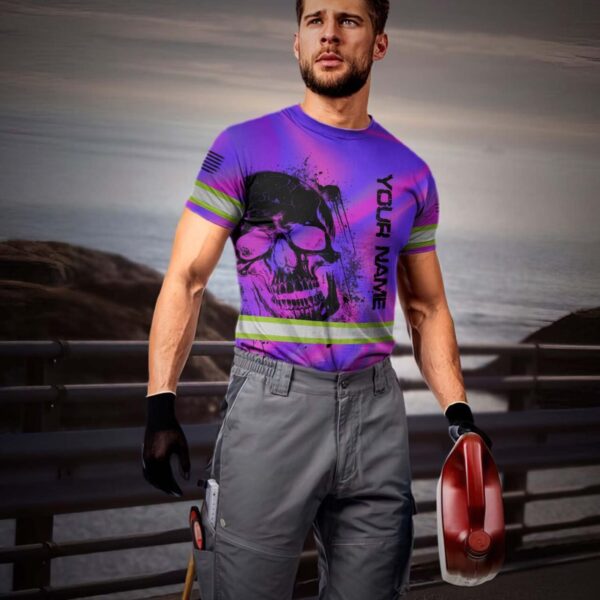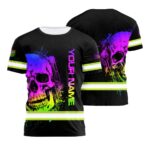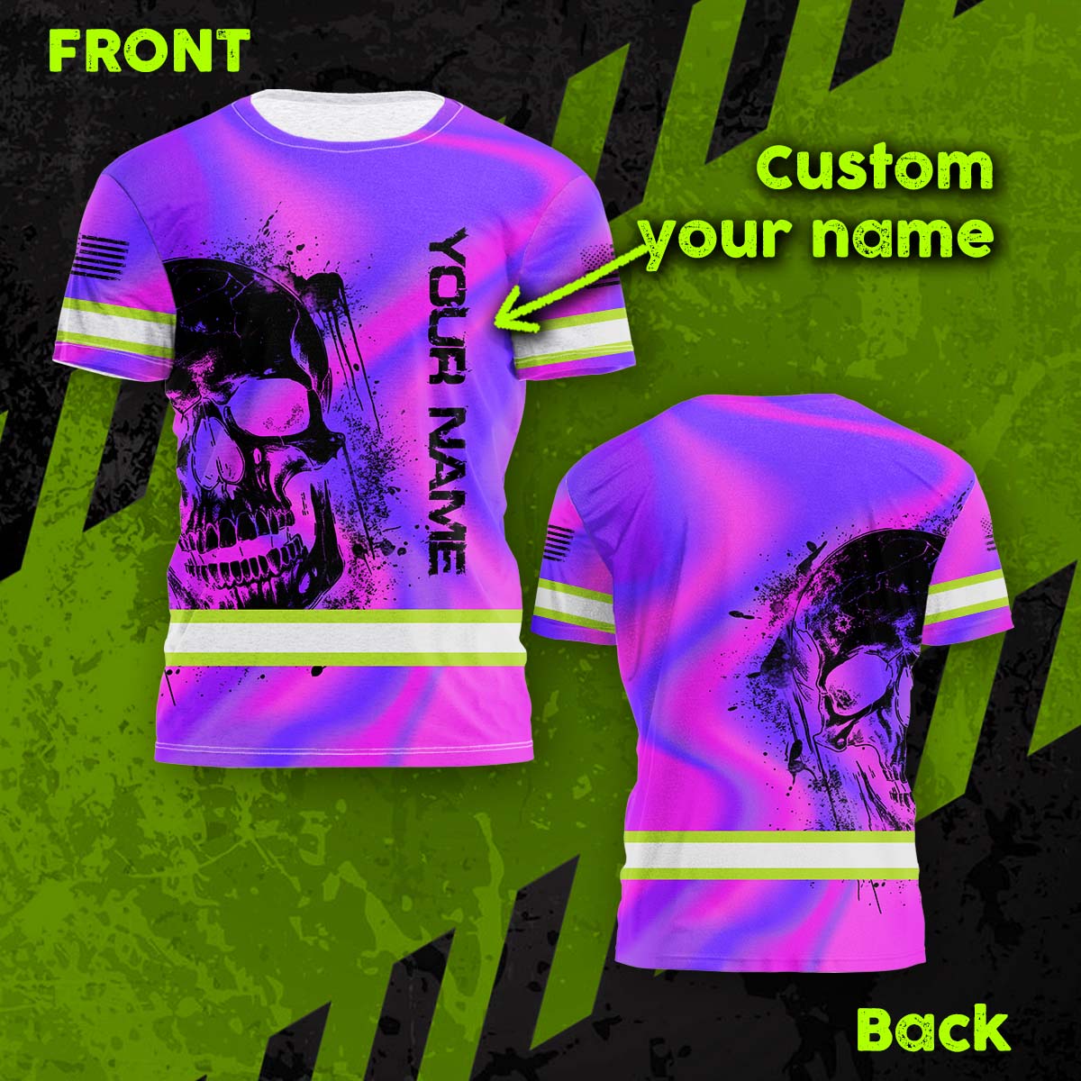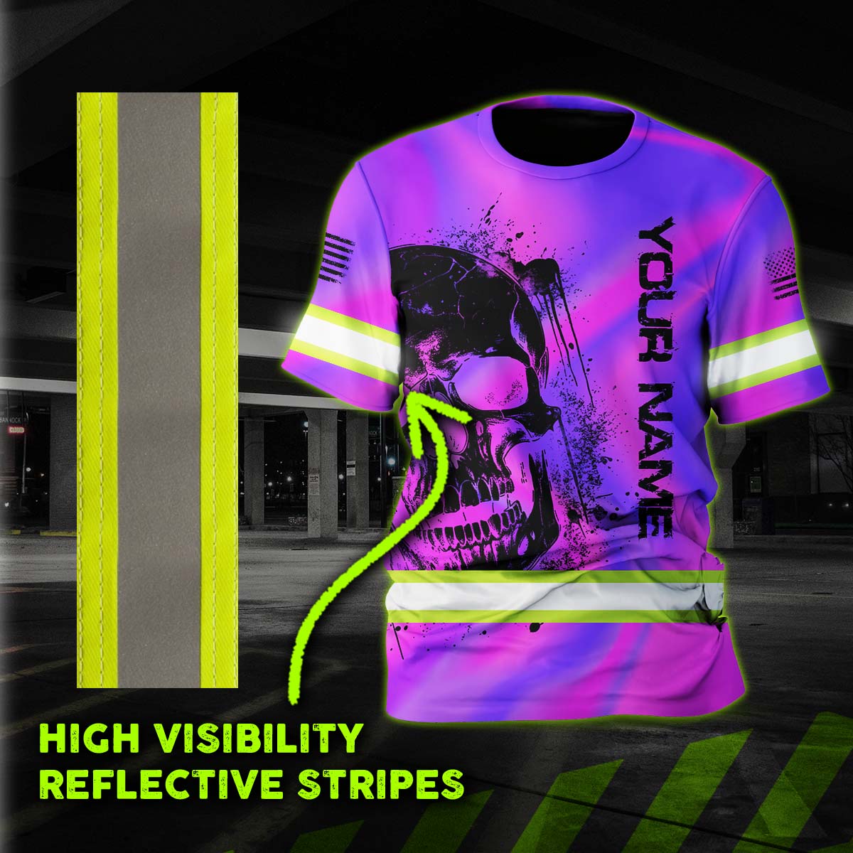 Hi Vis Shirt Reflective Tapes Violet Neon Skull And Flag Custom Name