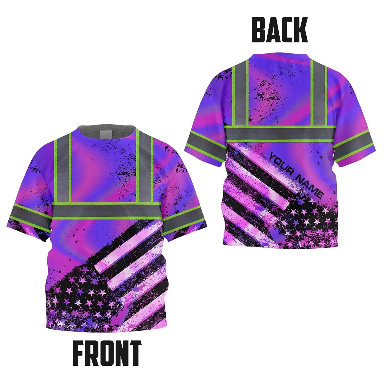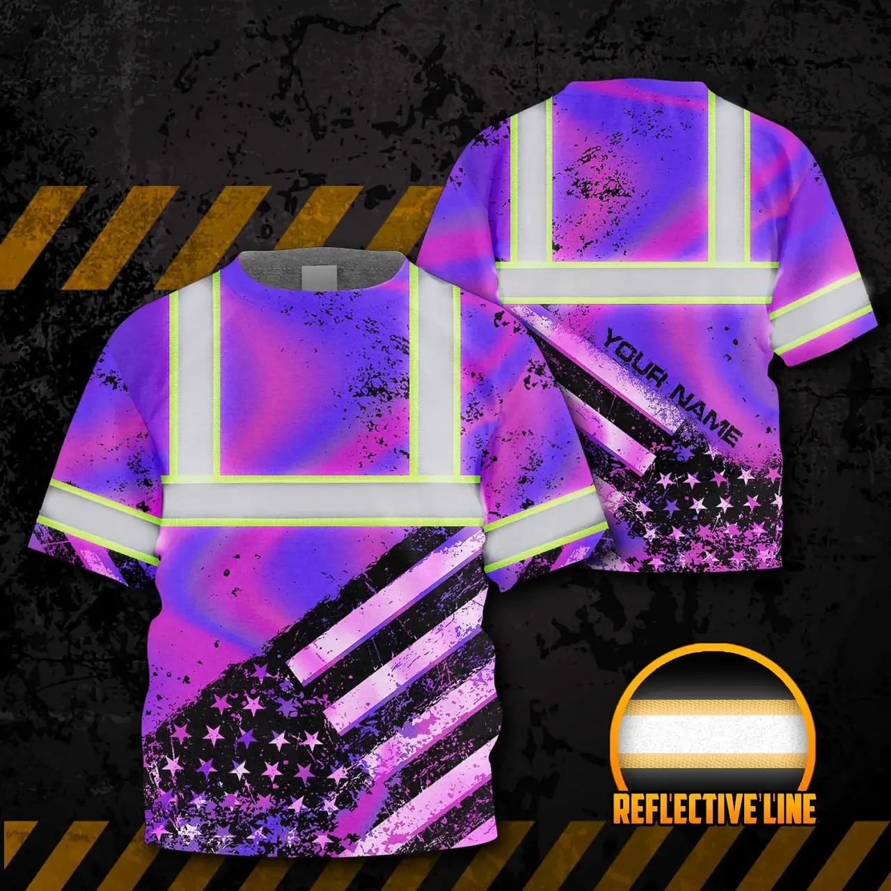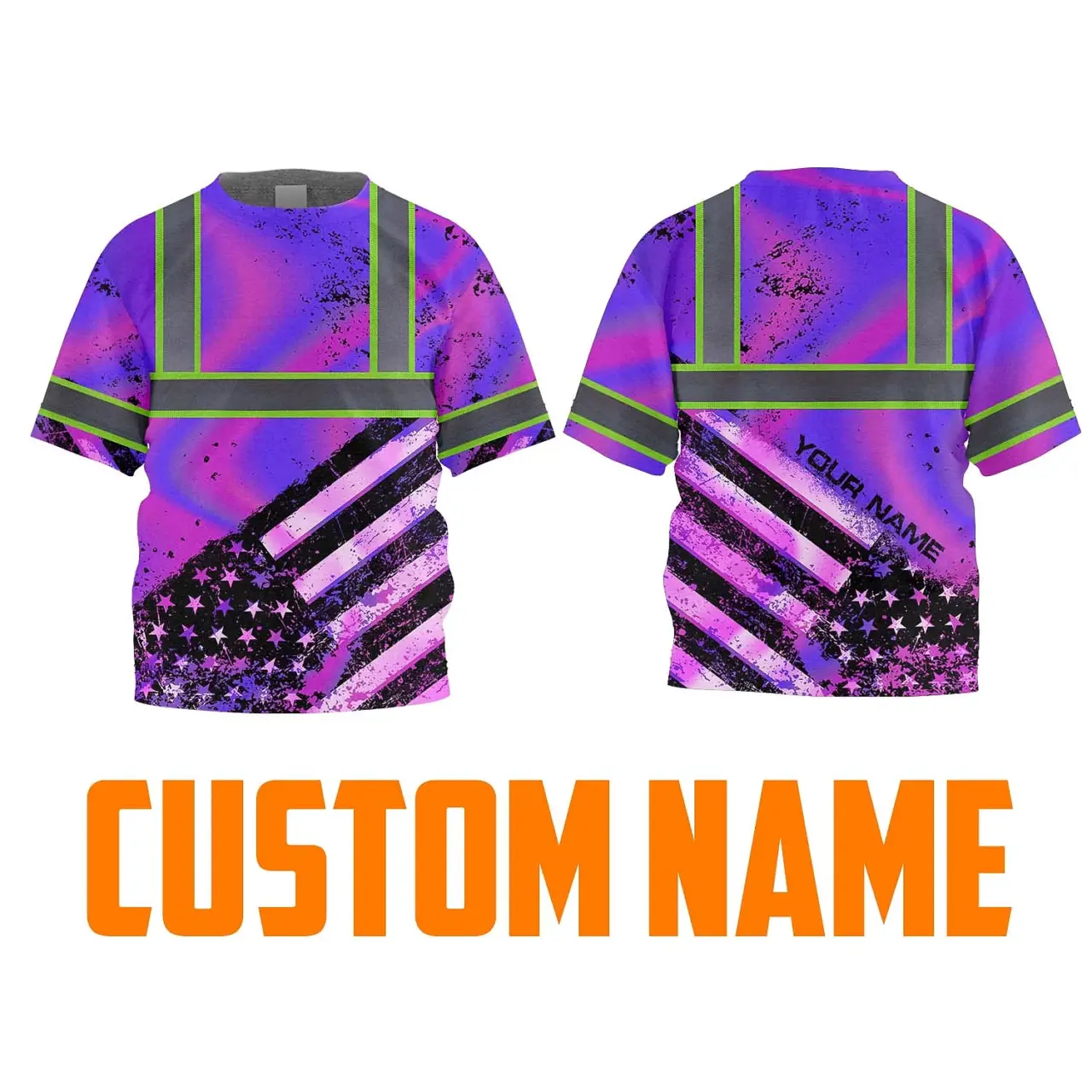 Hi Vis Shirt Reflective Tapes Hologram US Flag Paint Custom Name For Kids