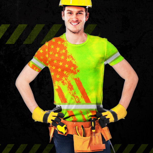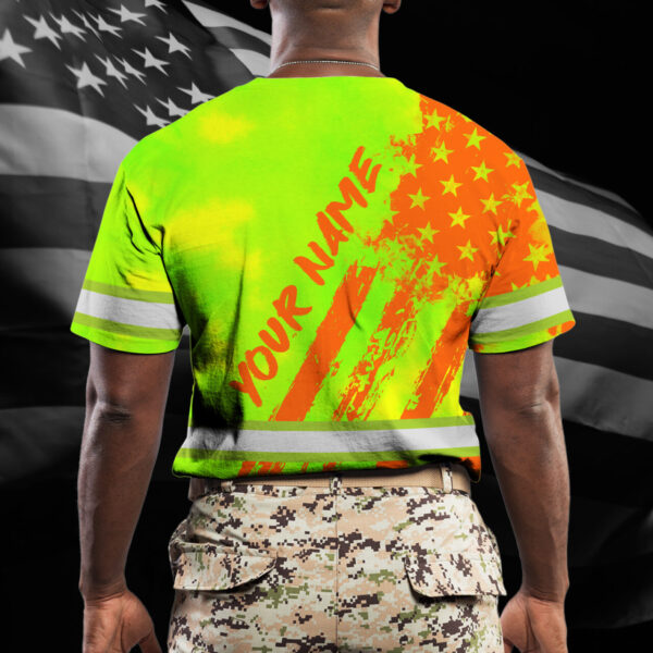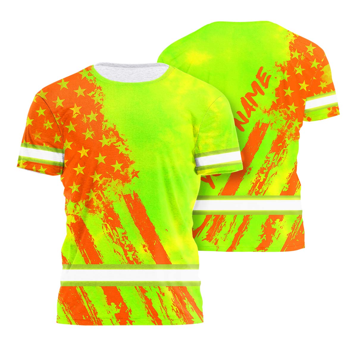 Hi Vis Shirt Reflective Tapes Lime Neon And Orange US Flag Custom Name