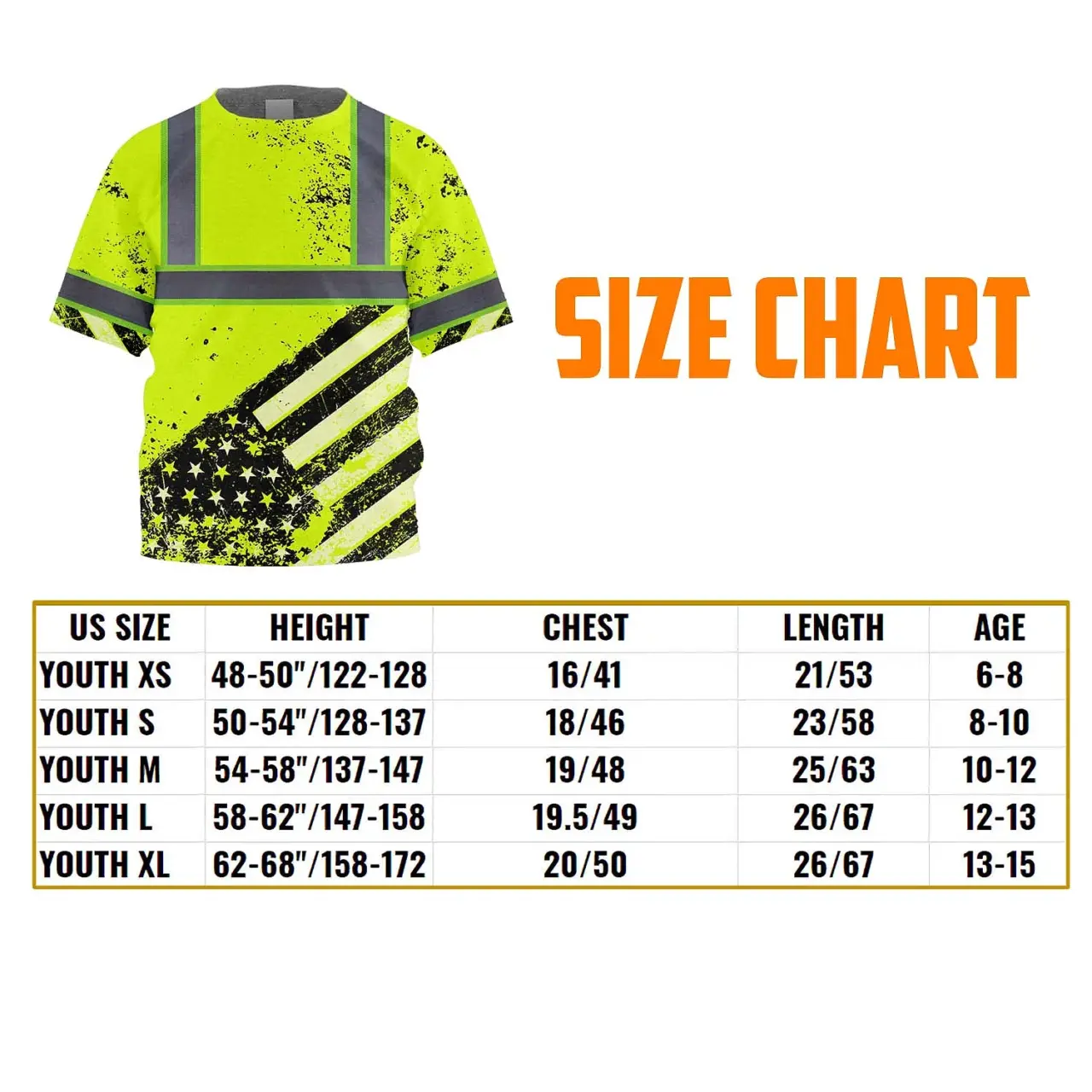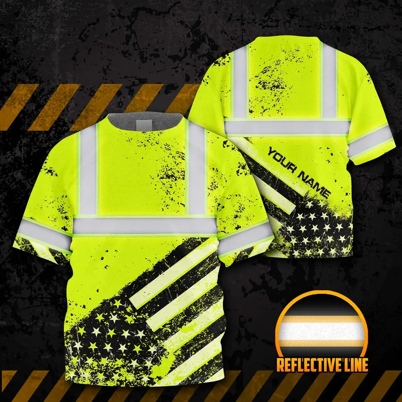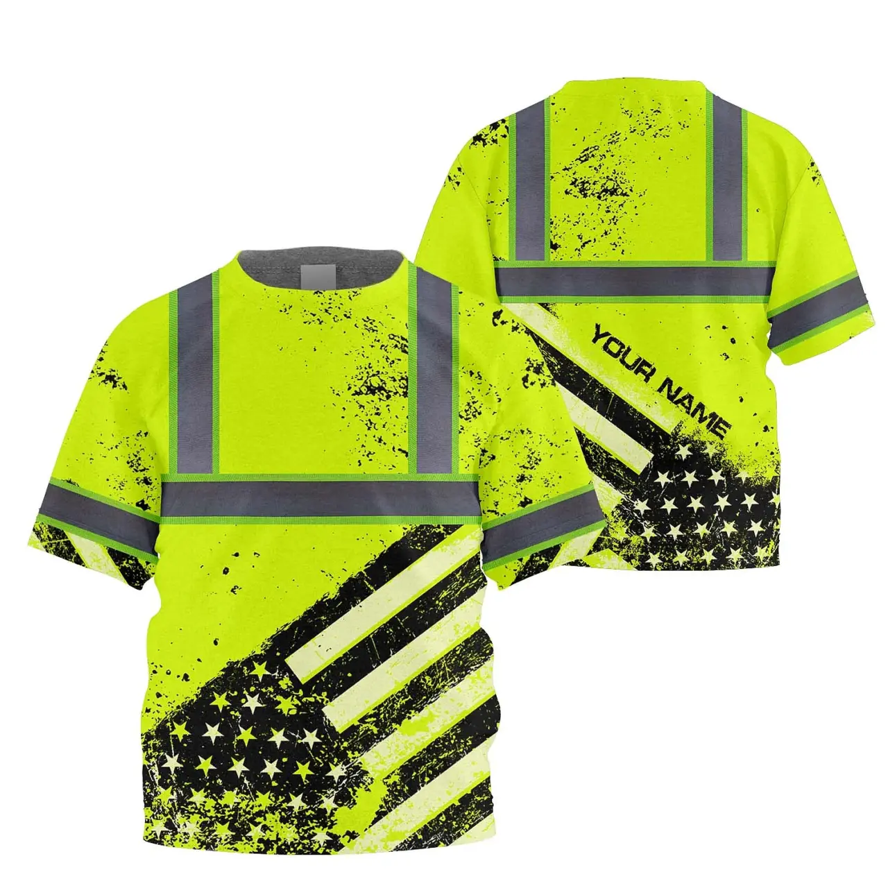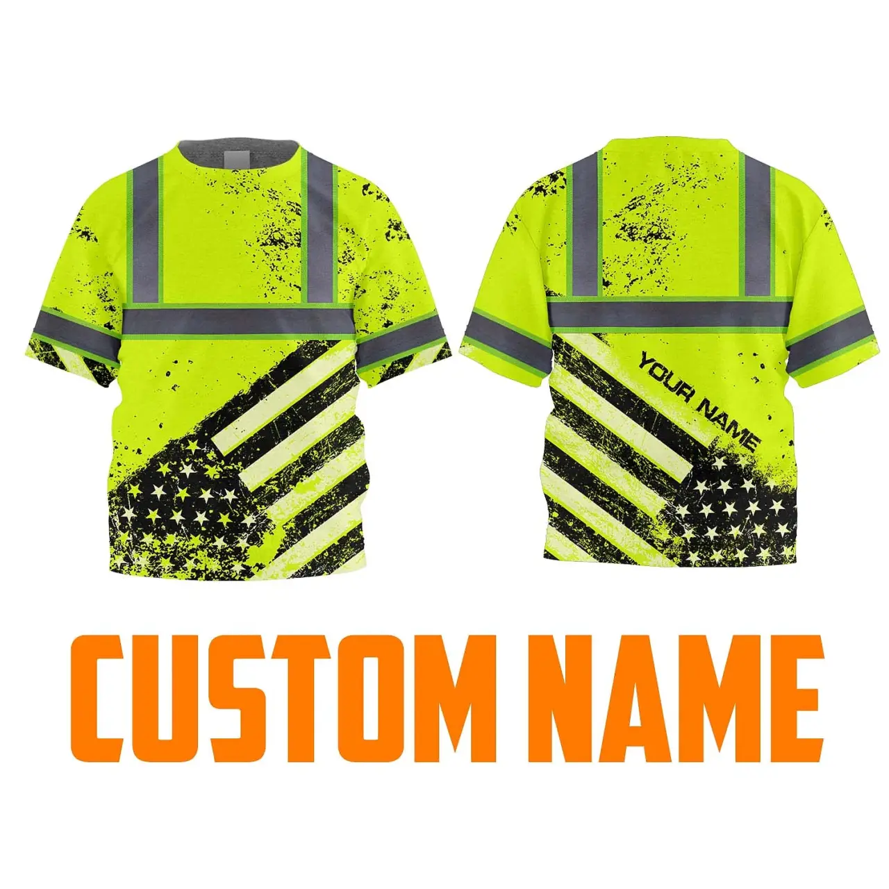 Hi Vis Shirt Reflective Tapes Lime US Flag Paint Custom Name For Kids