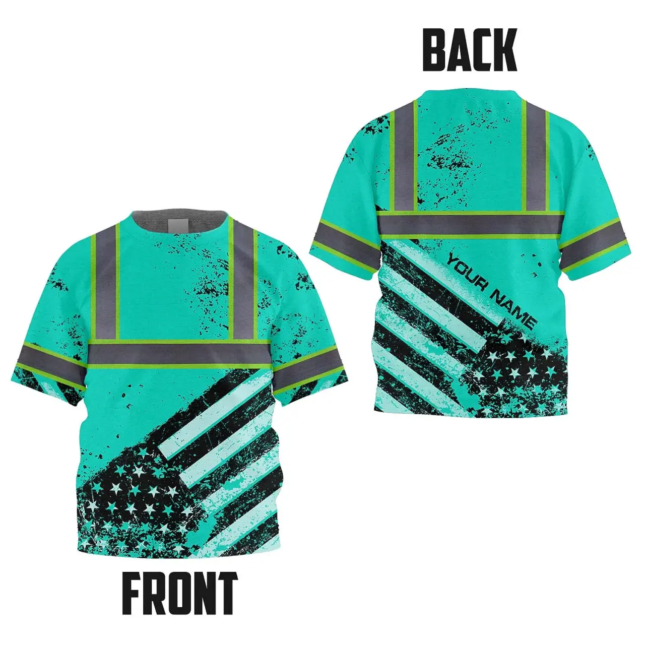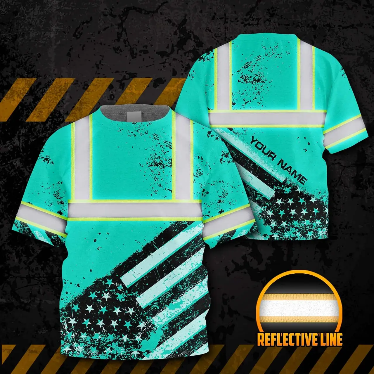 Hi Vis Shirt Reflective Tapes Mint US Flag Paint Custom Name For Kids