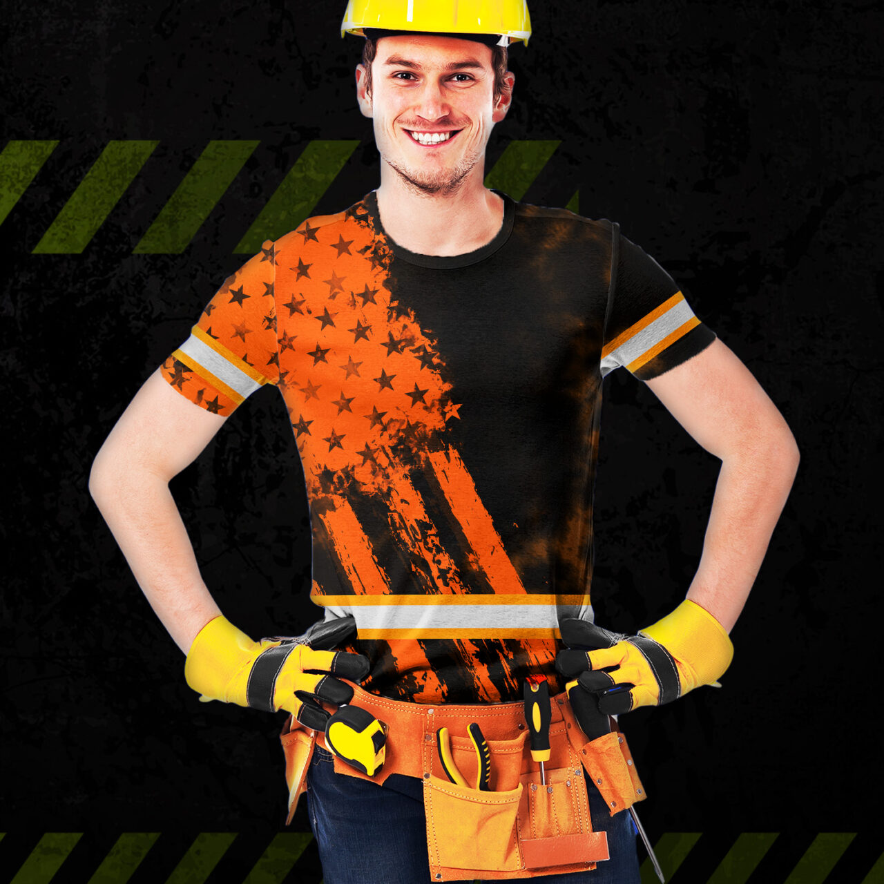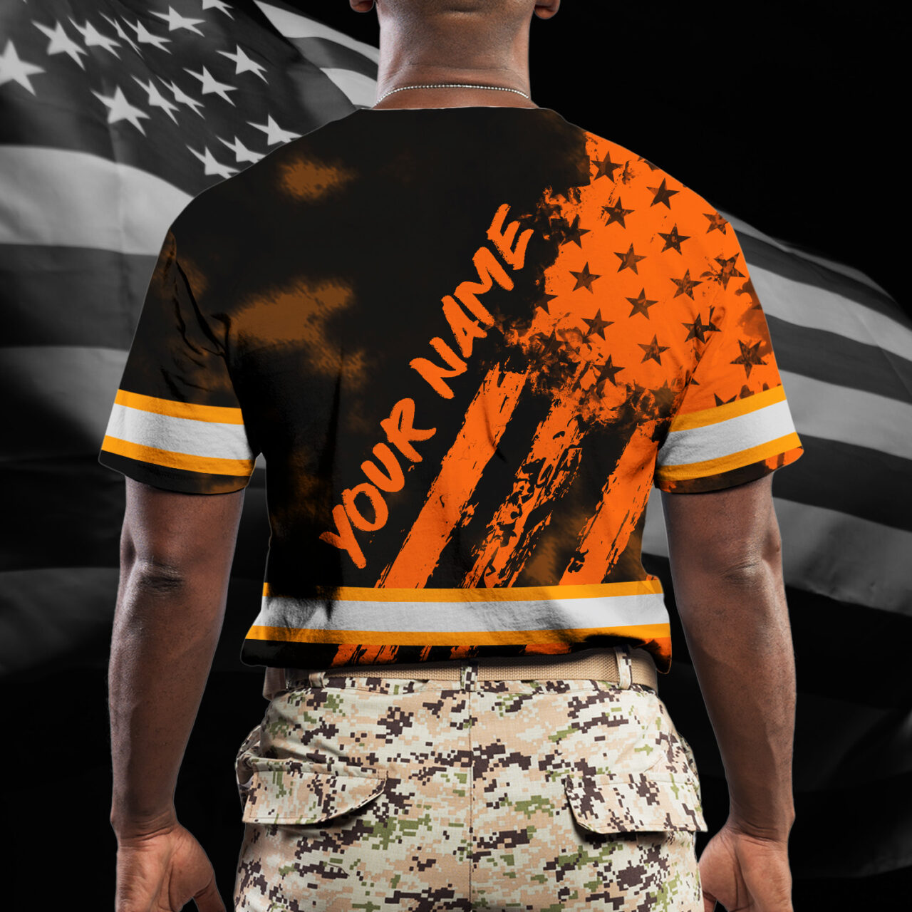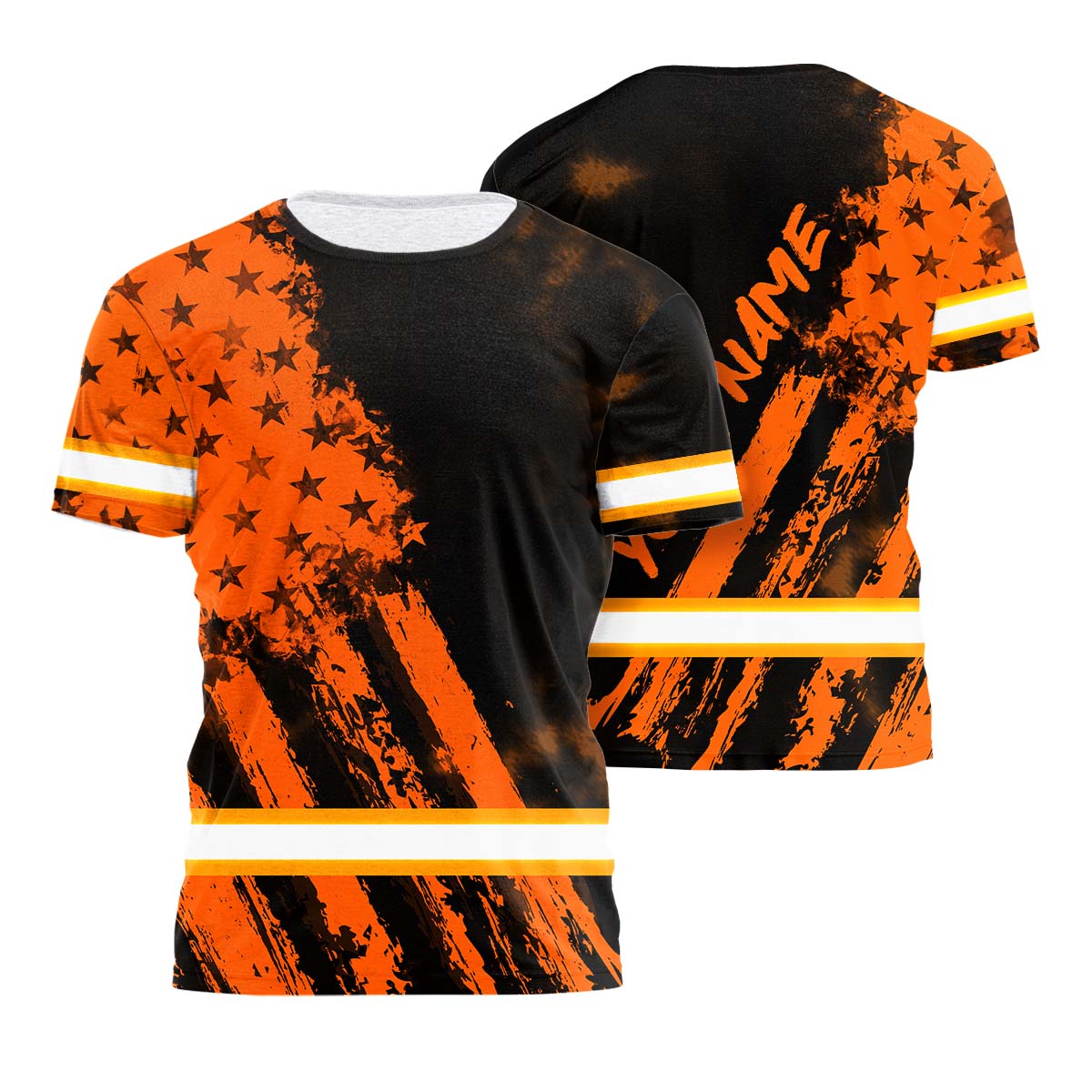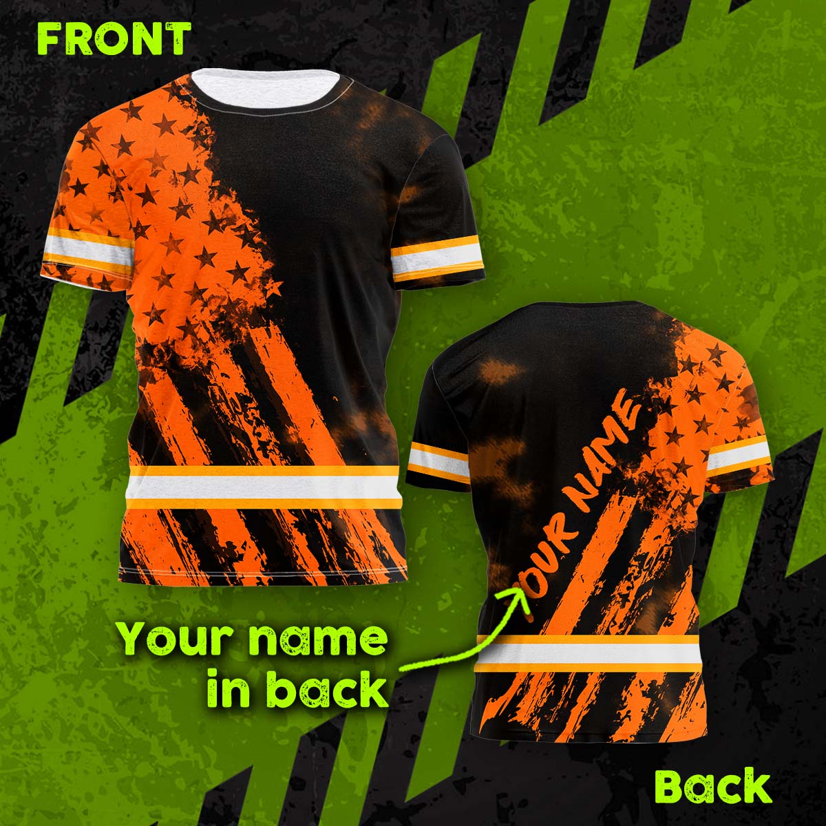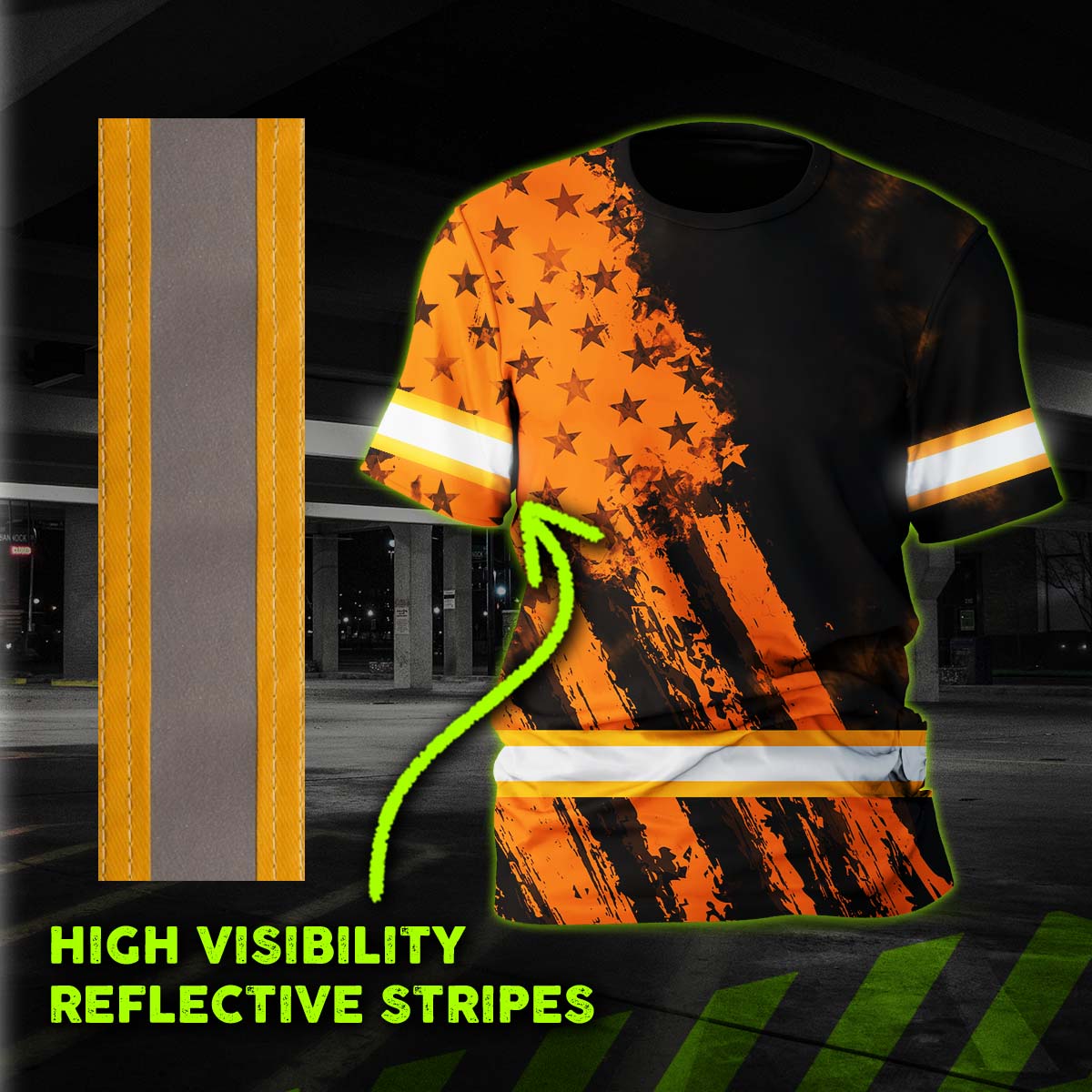 Hi Vis Shirt Reflective Tapes Orange Neon And Black US Flag Custom Name