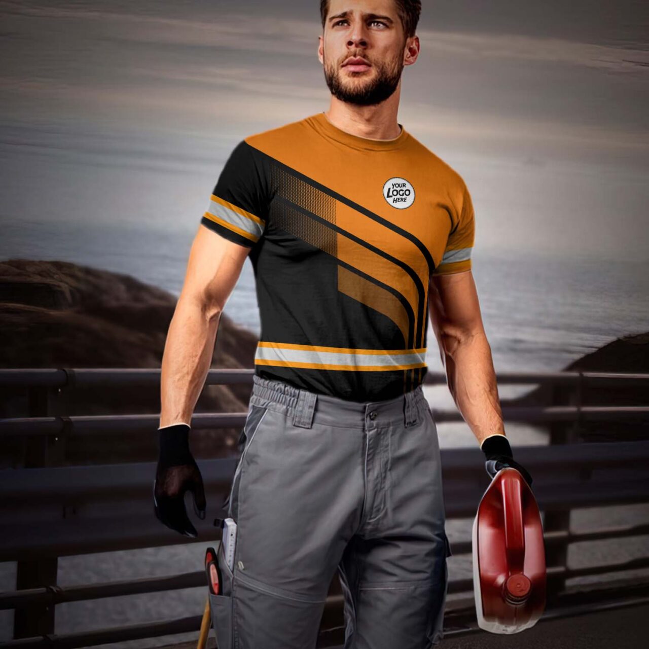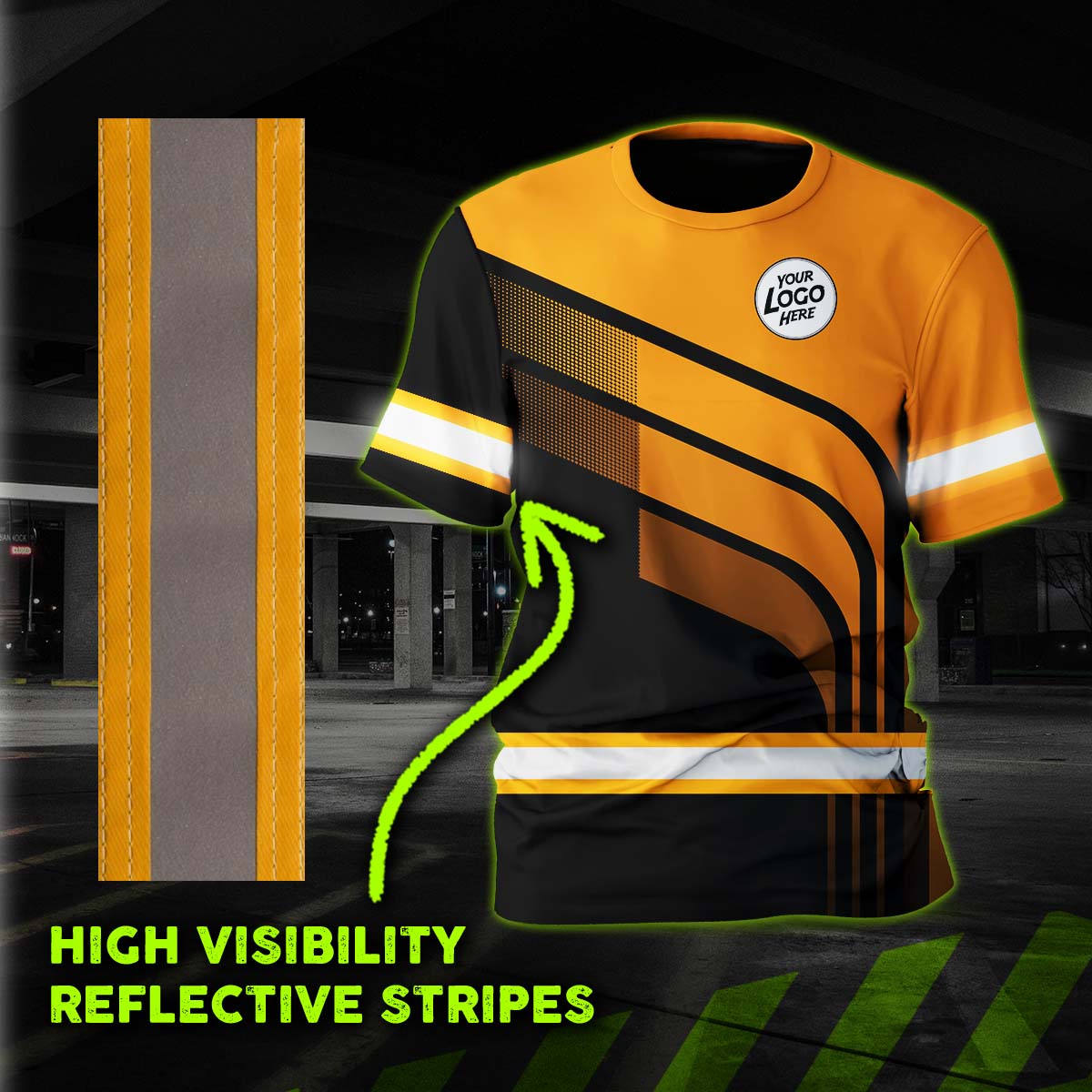 Hi Vis Shirt Reflective Tapes Orange Neon Black Uniform Custom Name And Logo Safety Workwear For Team, Group, Company